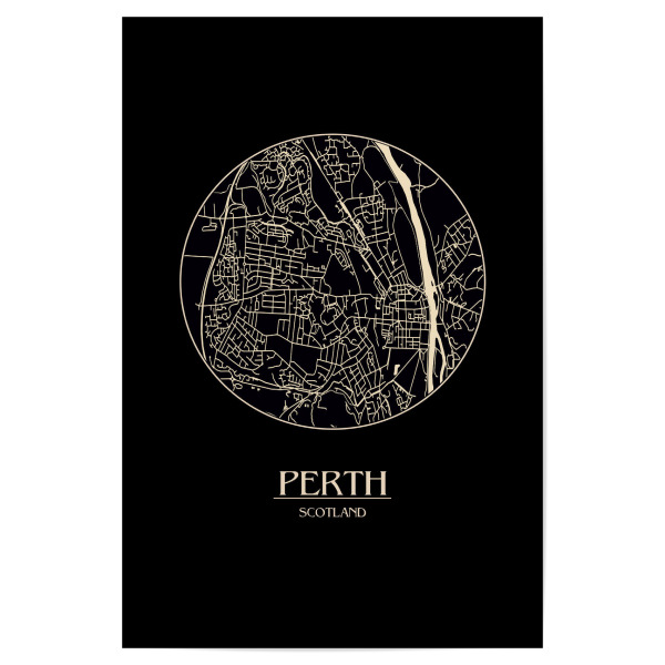 Poster "Retro Map Perth Black Round" artboxONE - Städte,Reise,Städte / Weitere,Kartografie - Map,Perth,Scotland,Retro map