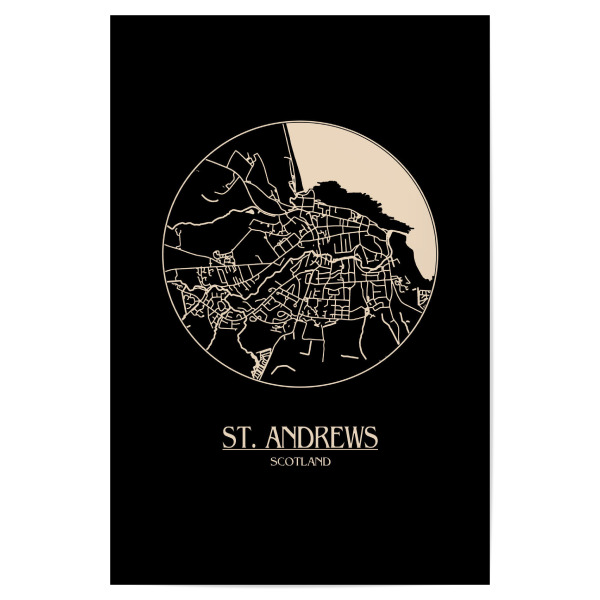 Poster 30x20 cm "Retro Map St. Andrews Black Round" artboxONE - Städte,Reise,Städte / Weitere,Kartografie - Map,Vintage,St. andrews,Scotland,Retro map