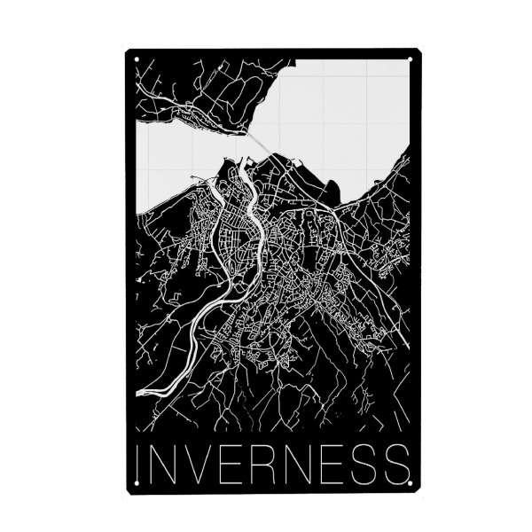 Metall Poster "Retro Map Inverness Black" artboxONE - Städte,Reise,Schwarzweiß,Städte / Weitere,Kartografie - Map,Inverness,Scotland,Vintage,Retro map
