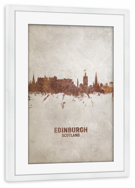 Poster mit Rahmen weiß "Edinburgh Scotland Rusty Skyline" artboxONE - Städte - Edinburgh,Edinburgh skyline,Rust