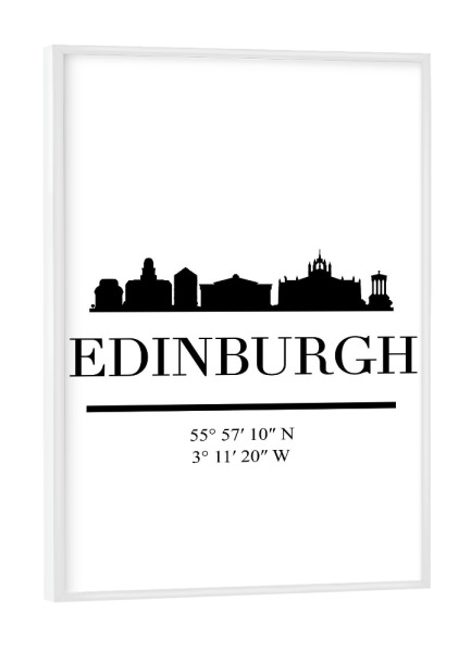 Poster mit weißem Rahmen "EDINBURGH SCOTLAND BLACK SKYLINE" artboxONE - Städte,Schwarzweiß,Städte / Weitere