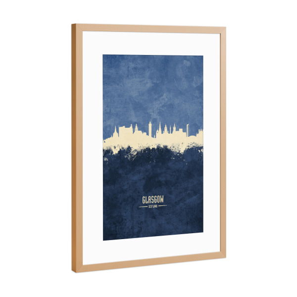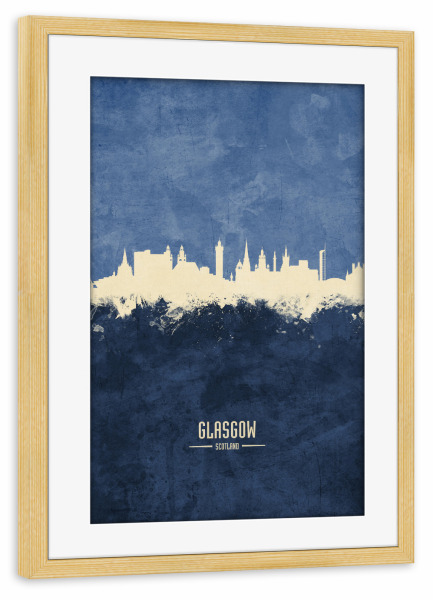 Poster mit Rahmen kiefer "Glasgow Skyline Navy" artboxONE - Städte - Glasgow,Scotland,Skyline,Cityscape,Painting,Watercolour,Stadtbild