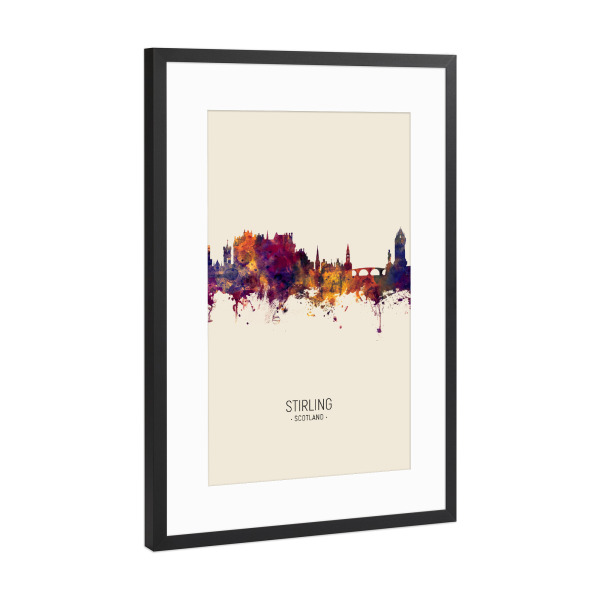 Poster mit Rahmen kiefer "Stirling Scotland Skyline Dark Red" artboxONE - Städte - Stirling,Skyline,Scotland