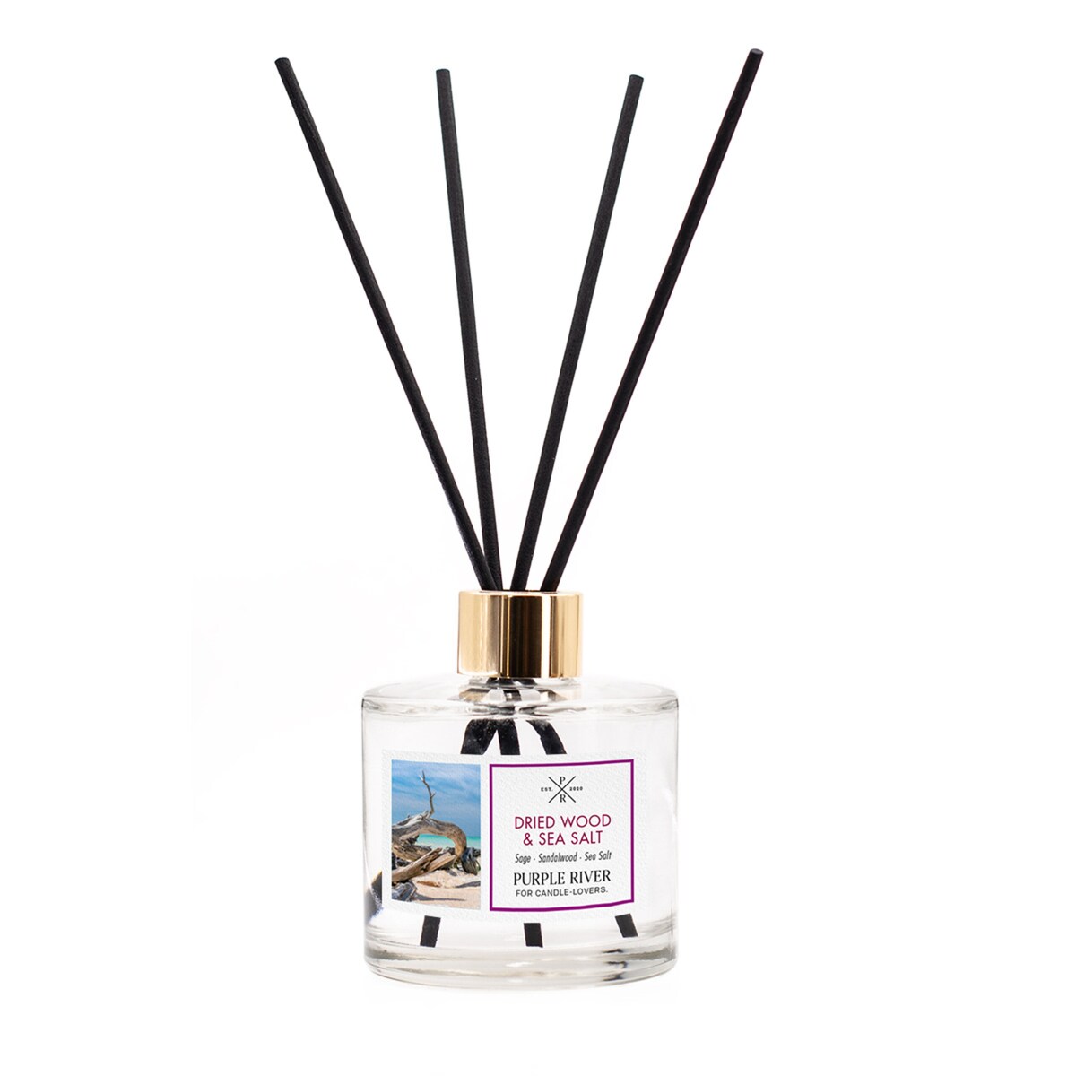 Fragrance and Style GmbH Reed Diffuser, Aroma Diffuser, Duftöl Diffuser | Dried Wood & Sea Salt | 100 ml, Glas, ohne Flamme & Strom