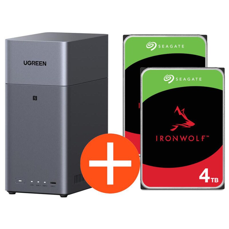 UGREEN DXP2800 8TB Seagate IronWolf NAS-Bundle NAS inkl. 2x 4TB Seagate IronWolf 3,5 Zoll SATA Festplatte