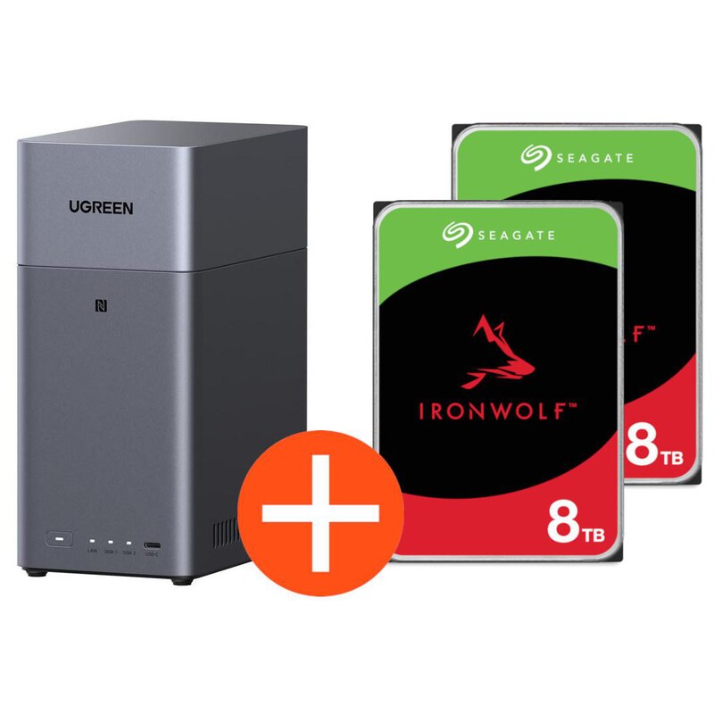 UGREEN DXP2800 16TB Seagate IronWolf NAS-Bundle NAS inkl. 2x 8TB Seagate IronWolf 3,5 Zoll SATA Festplatte