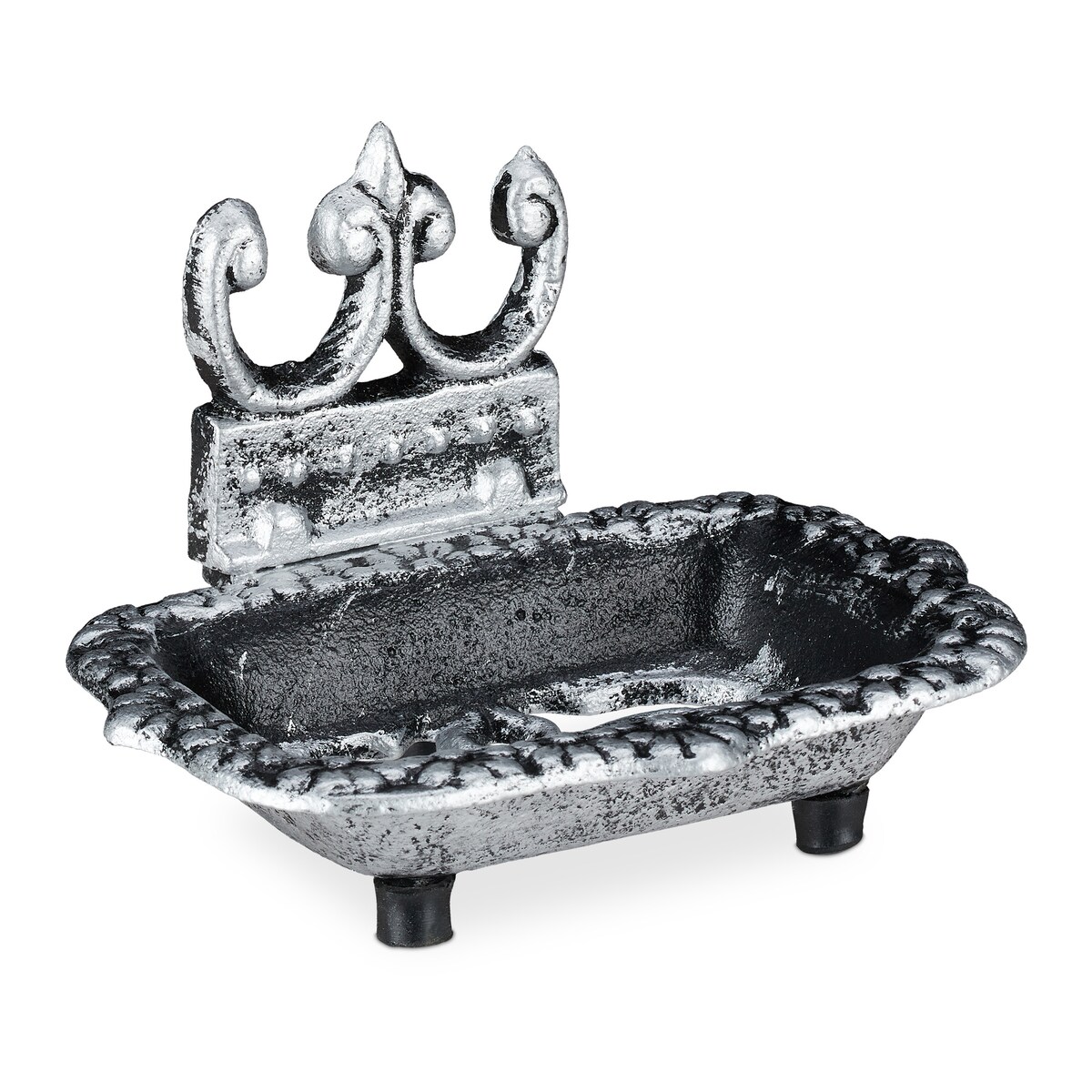 Relaxdays Seifenschale, antikes Design, eckiger Seifenhalter aus Gusseisen, nostalgisch, Seifenablage mit Ablauf, silber