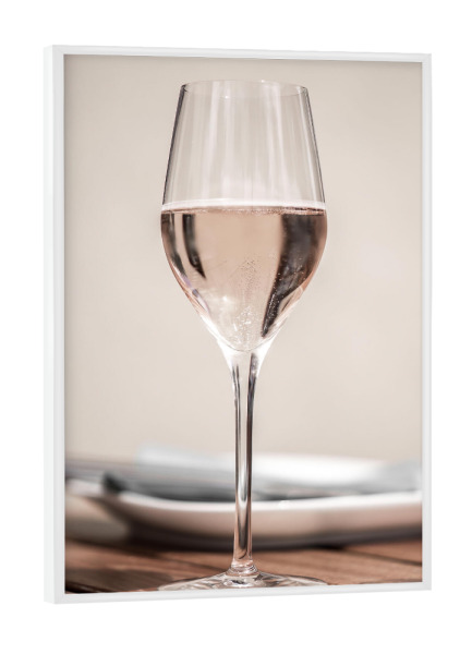 Poster mit weißem Rahmen "Sektglas auf Tisch" artboxONE - Essen & Trinken / Alkohol - Sekt,Champagne,Glas,Restaurant