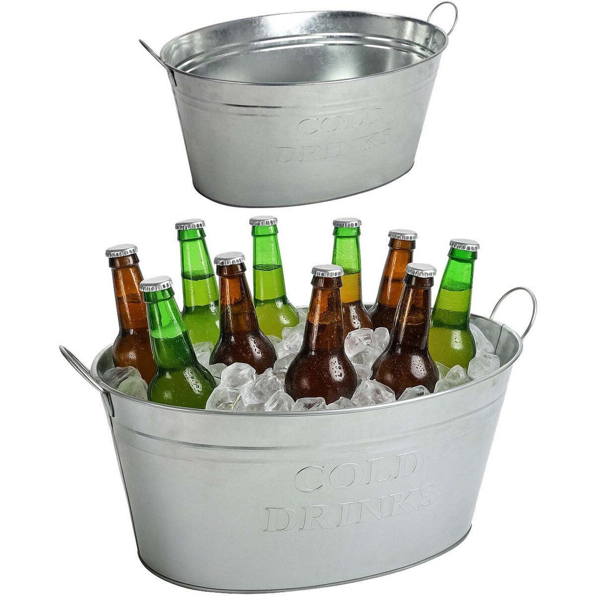BURI Zinkwanne Getränkewanne Getränkekühler Sektkühler Eiseimer Gartenparty Kübel Silber