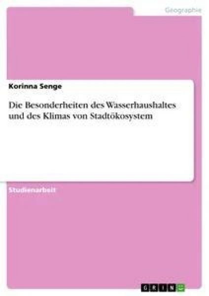 Die Besonderheiten des Wasserhaushaltes und des Klimas von Stadtökosystem, Taschenbuch von Korinna Senge, GRIN, 9783640292615