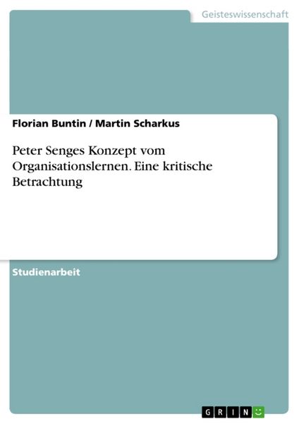 Peter Senges Konzept vom Organisationslernen. Eine kritische Betrachtung, Taschenbuch von Martin Scharkus , Florian Buntin, GRIN, 9783638822572