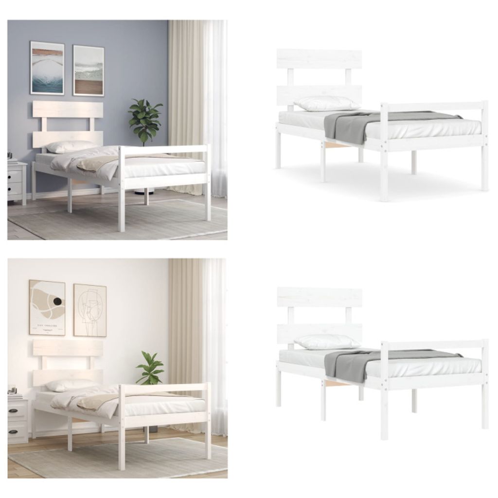 vidaXL Seniorenbett mit Kopfteil 90x200 cm Weiß Massivholz - Seniorenbett - Seniorenbetten - Bett Für Senioren - Betten Für Senioren