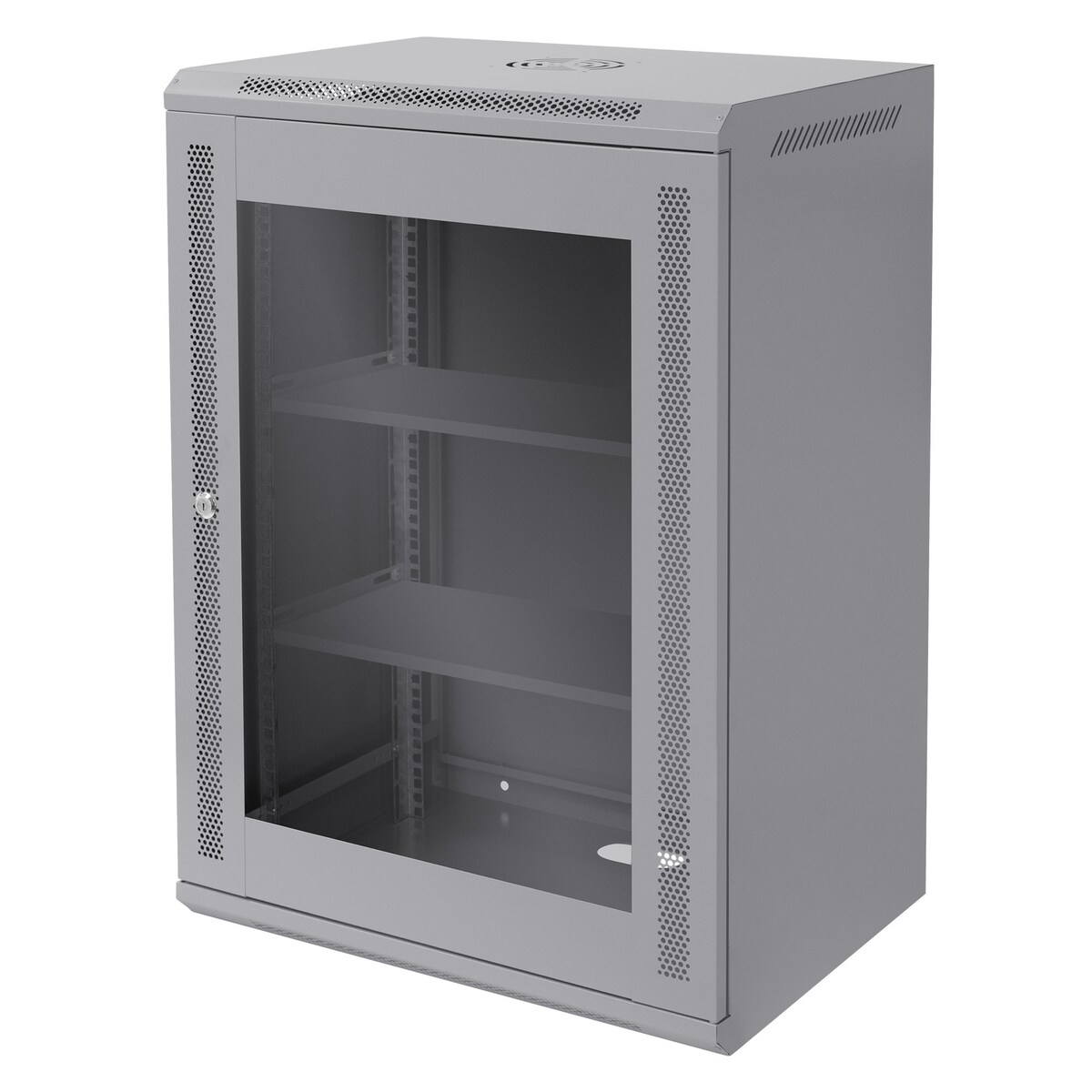 ECD Germany Netzwerkschrank 16 HE Grau, Serverschrank 19 Zoll, Wandmontage 600×850×450 mm, abschließbare Glastür