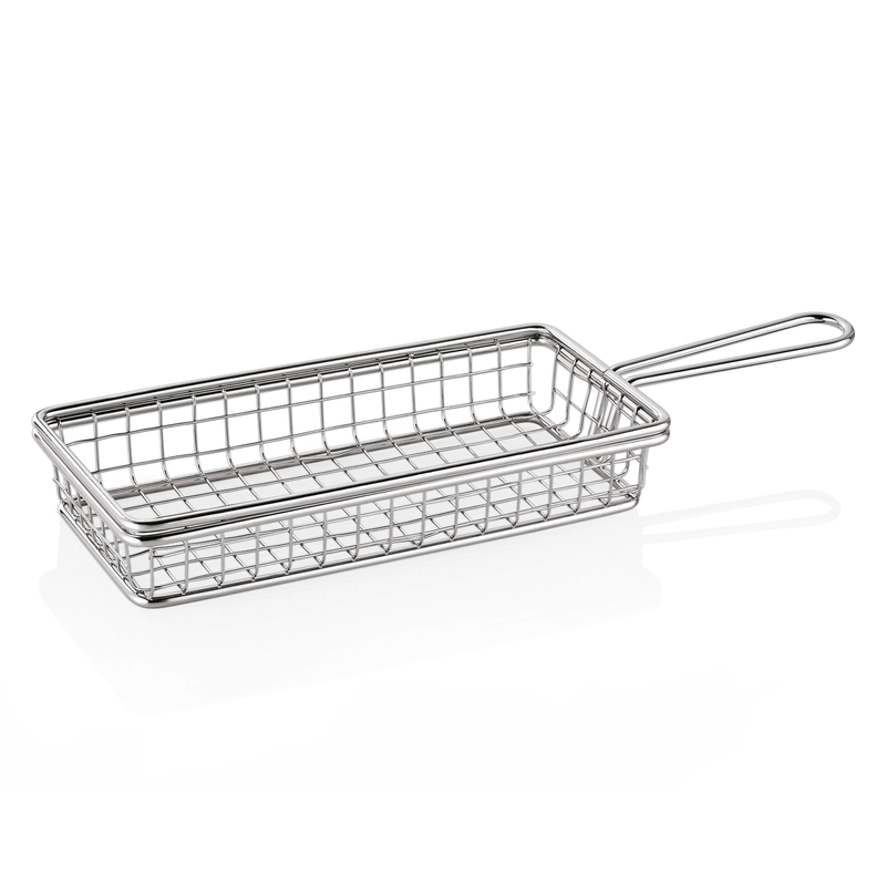 Edelstahl-Servierkorb mit Griff für Pommes Frites und Brathähnchen (rechteckig)