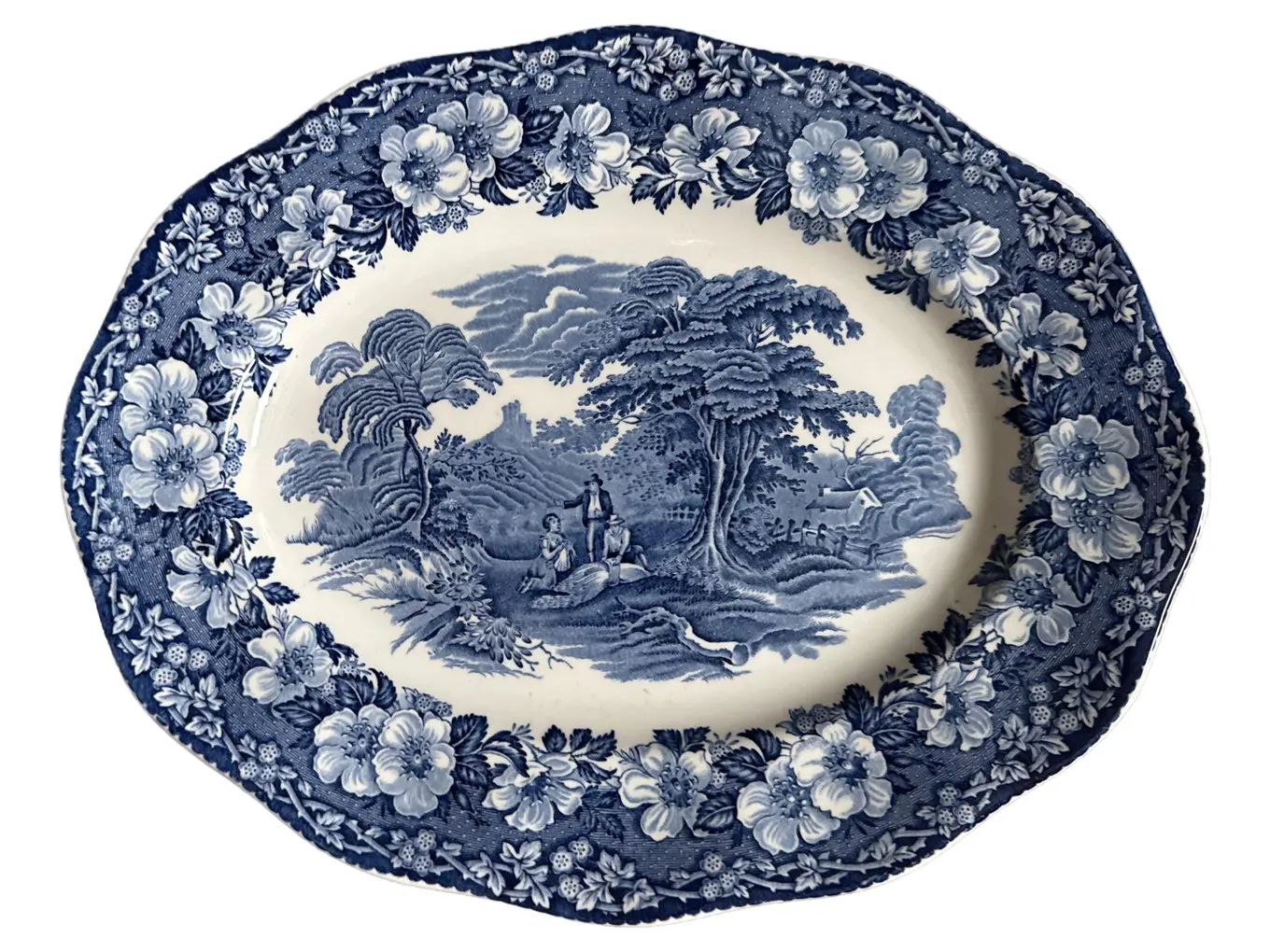 ENOCH WEDGWOOD Woodland Servierplatte Keramik Blau Vintage 30x24 cm