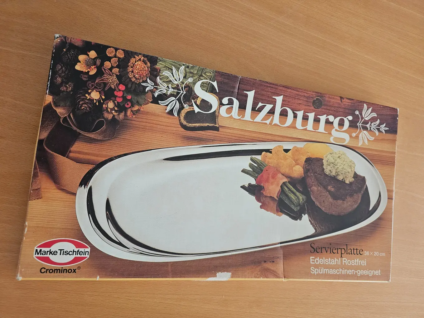 MARKENLOS CHROMINOX Servierplatte Salzburg Edelstahl Rostfrei 36x20 cm Silber