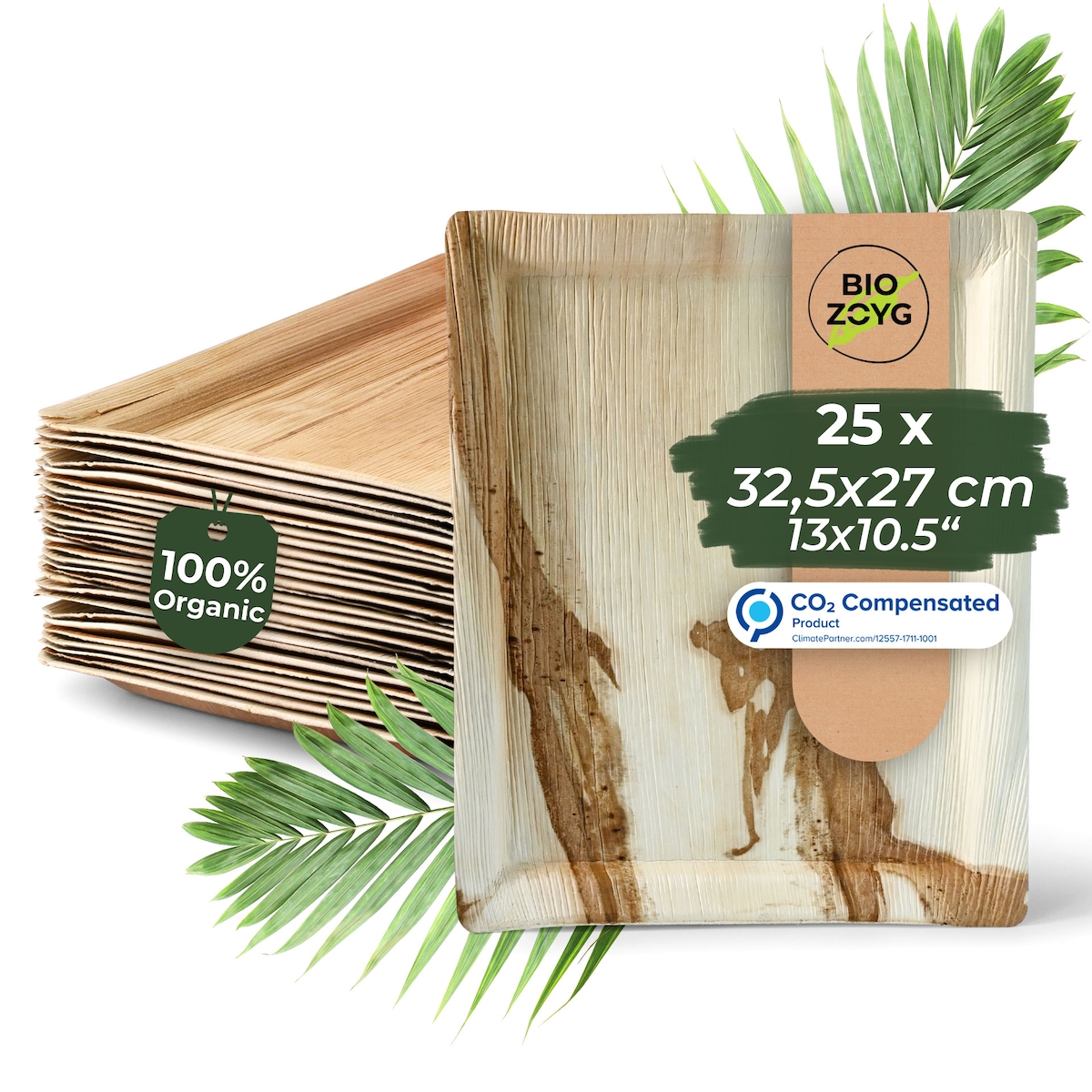 BIOZOYG 25 Stück Serviertablett 32,5x27cm Gastronorm, Einweg-Serviertabletts, Bio-Servierplatten, kompostierbar, aus Palmblatt Einweg-Serviertabletts