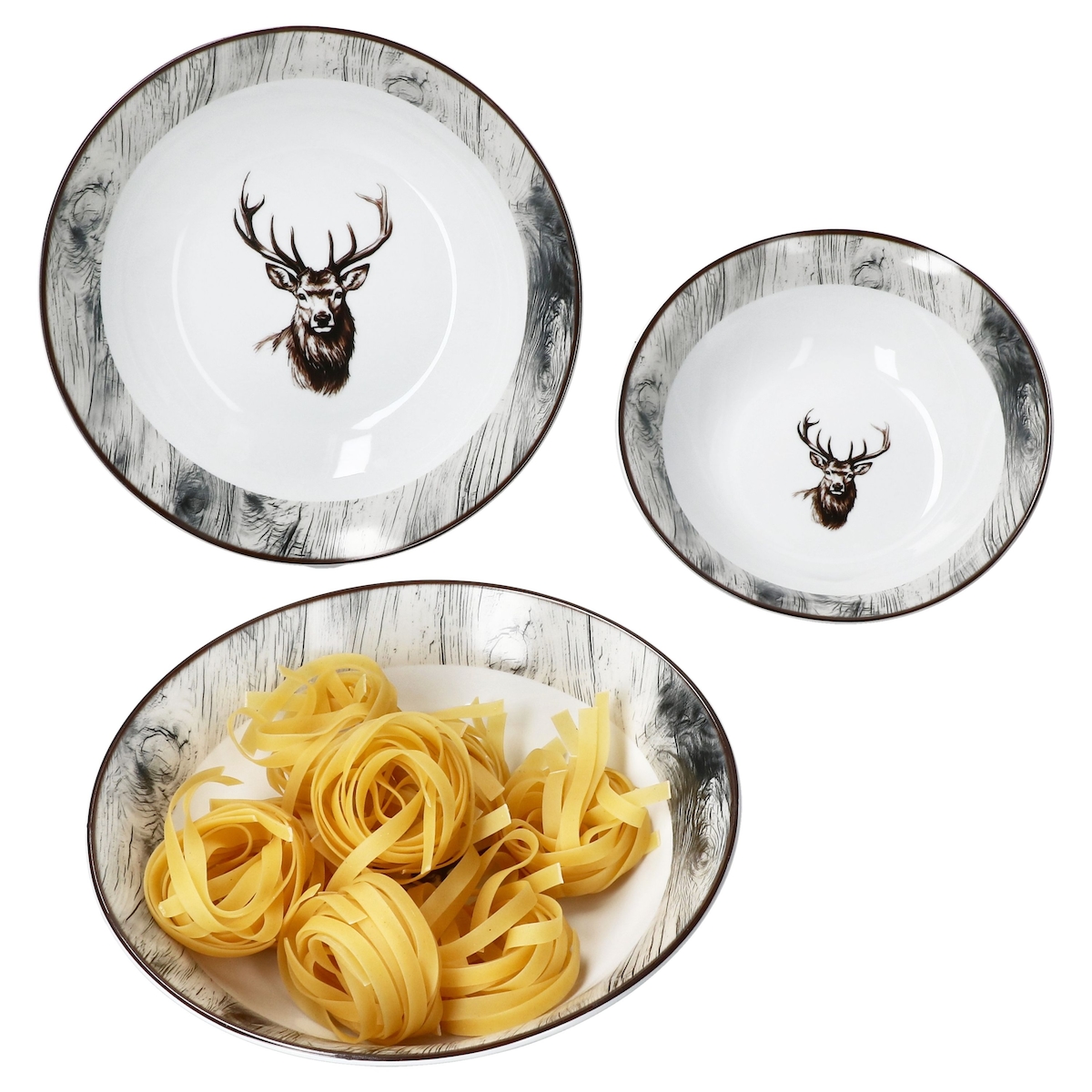 3tlg Servierschale Set Alois 650ml 1L & 1,3L Porzellan Hirsch Schüssel Beilagen