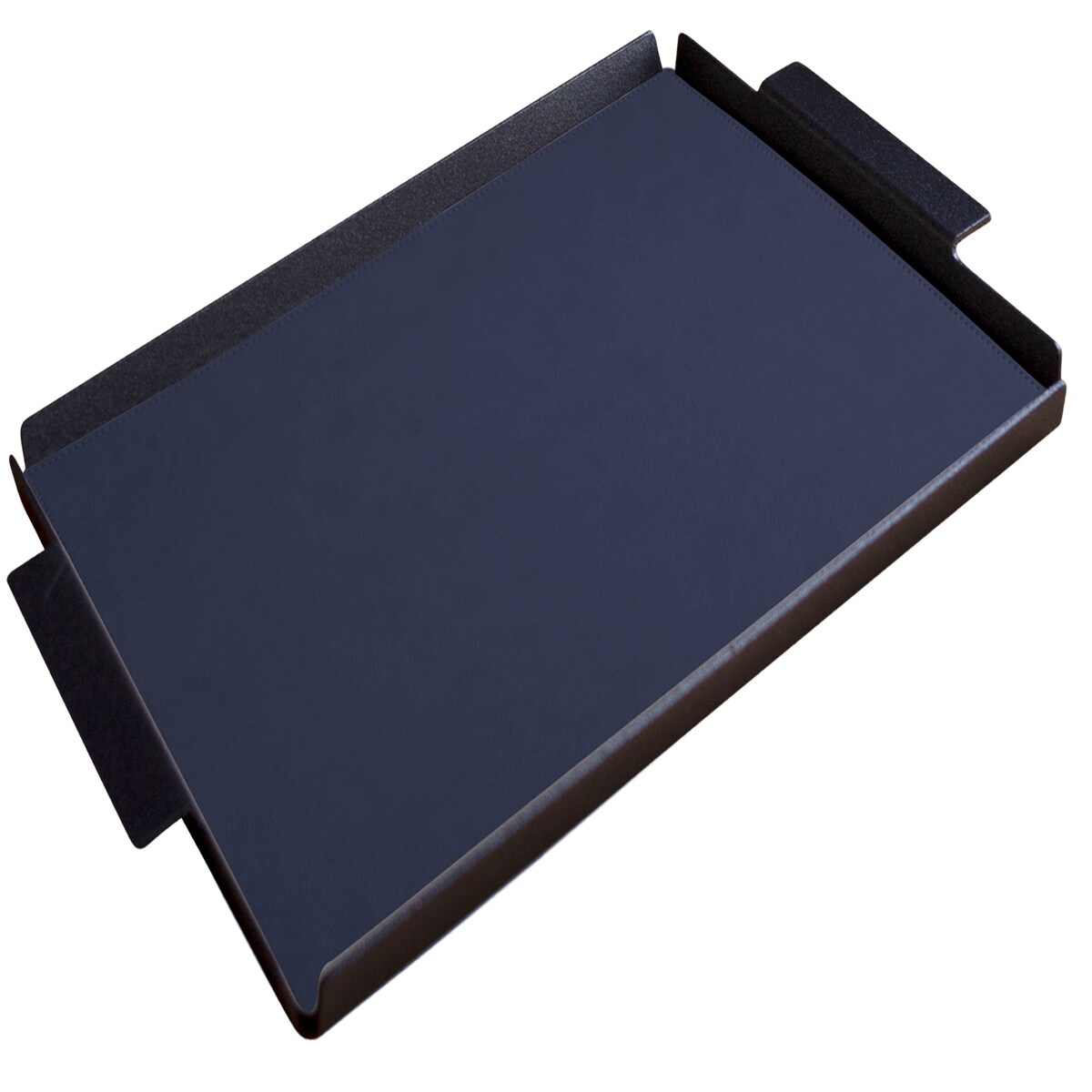 Stil Casa, 6er Set Serviertabletts, schwarz lackiertes Aluminium, Deckel aus genähtem, laminiertem Polyurethan, 45x65xh. 0,2 cm, Farbe blau.