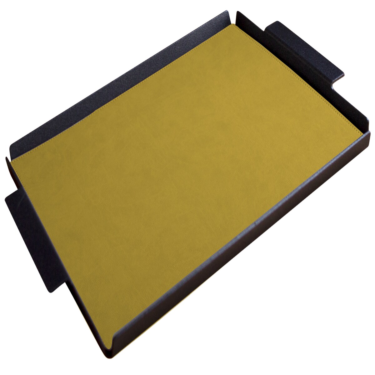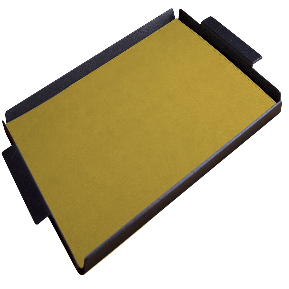 Stil Casa, 6er Set Serviertabletts, schwarz lackiertes Aluminium, Deckel aus genähtem, laminiertem Polyurethan, 45x65xh. 0,2 cm Farbe mud (senf).