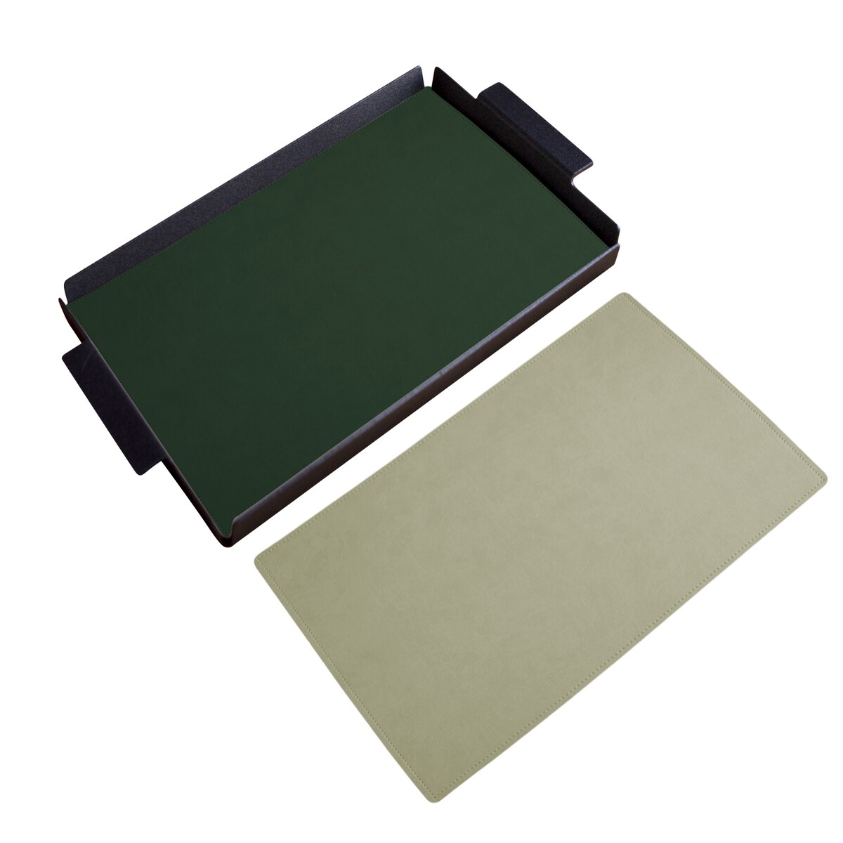 Stil Casa, 6er-Set Serviertabletts, Aluminium schwarz lackiert, Bezug Polyurethan gepaart, 45x65xh. 0,2 cm Farbe Schlamm (Senf)/grün.