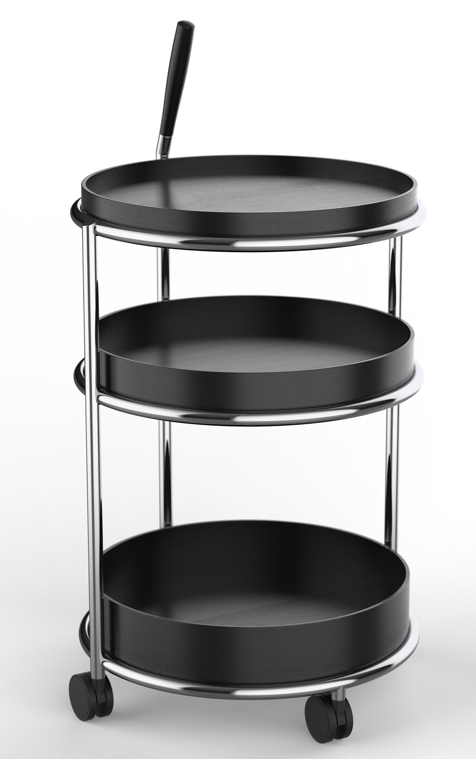 K6 Trolley Servierwagen Tecta Eiche schwarz lackiert - Stahlrohr verchromt