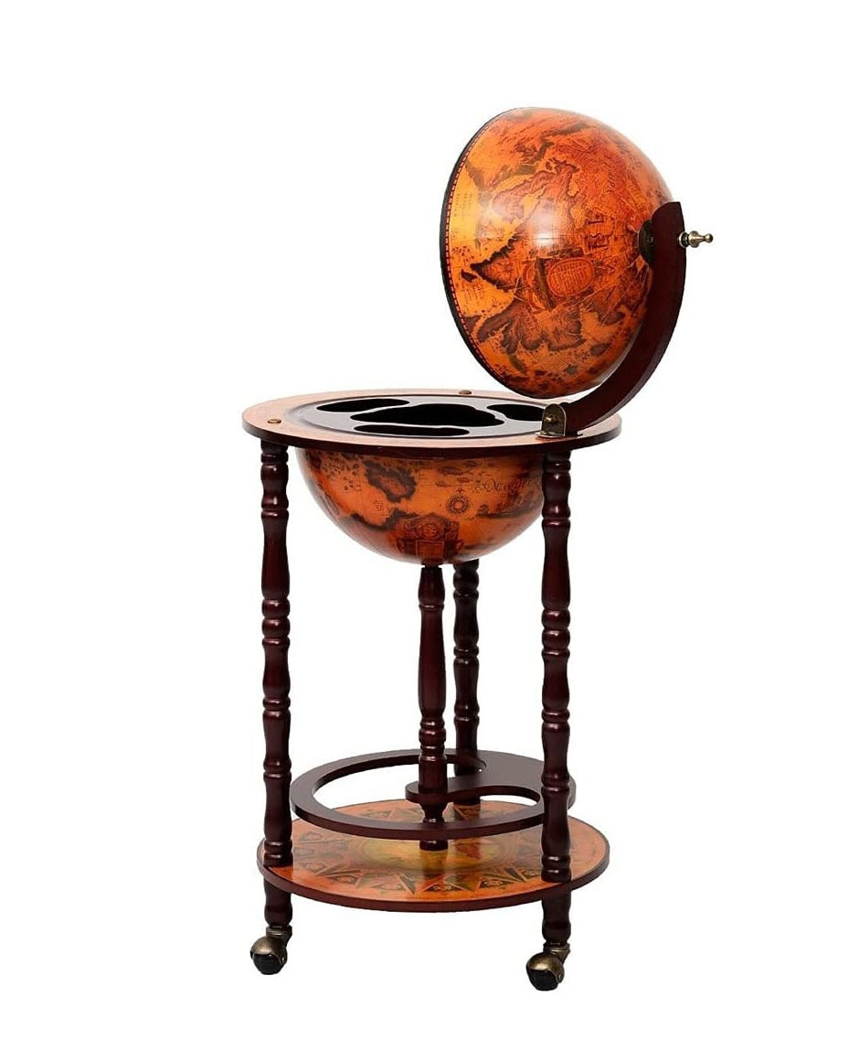 Globus Bar Hausbar, Barwagen Minibar mit antikem Design, Servierwagen Weinregal auf Rollen, Tischbar Cocktailbar Barschrank Globus