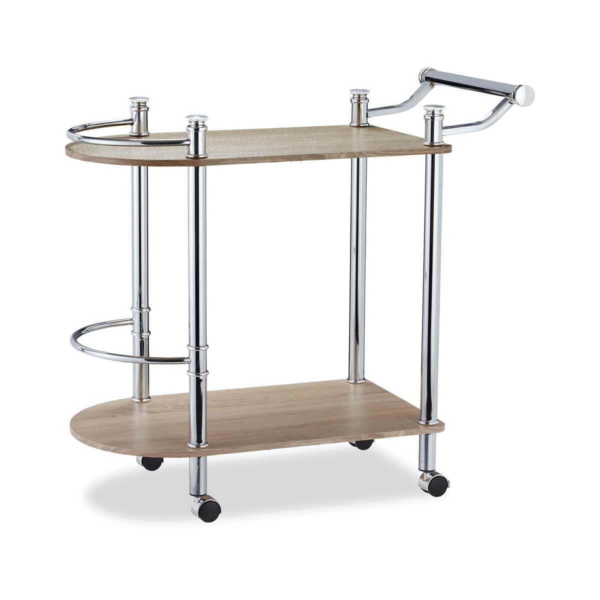 Relaxdays Servierwagen 2 Etagen, Holz-Optik, MDF und Stahl, 4 Rollen, mit Griff, Barwaagen, HxBxT 76 x 39 x 82 cm, braun