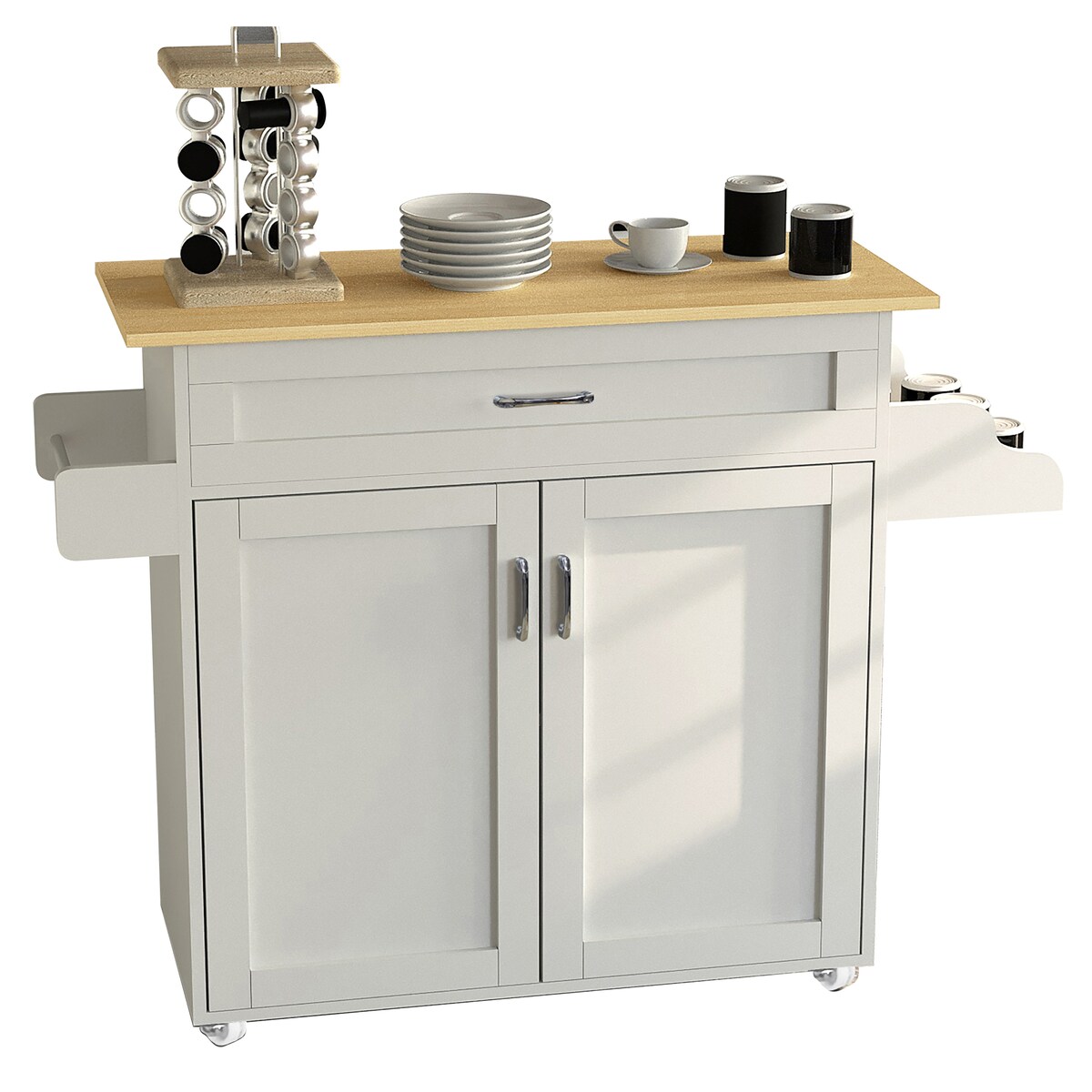Küchenwagen Servierwagen Kücheninsel, 1 Gewürzregal, 1 Handtuchhalter, 109 cm x 40 cm x 89 cm, Weiß