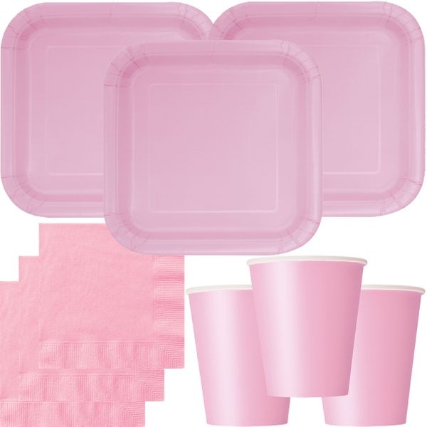 Party Deko Set rosa Einweggeschirr für 14 Personen eckige Teller, Becher, Servietten Hochzeit Geburtstag