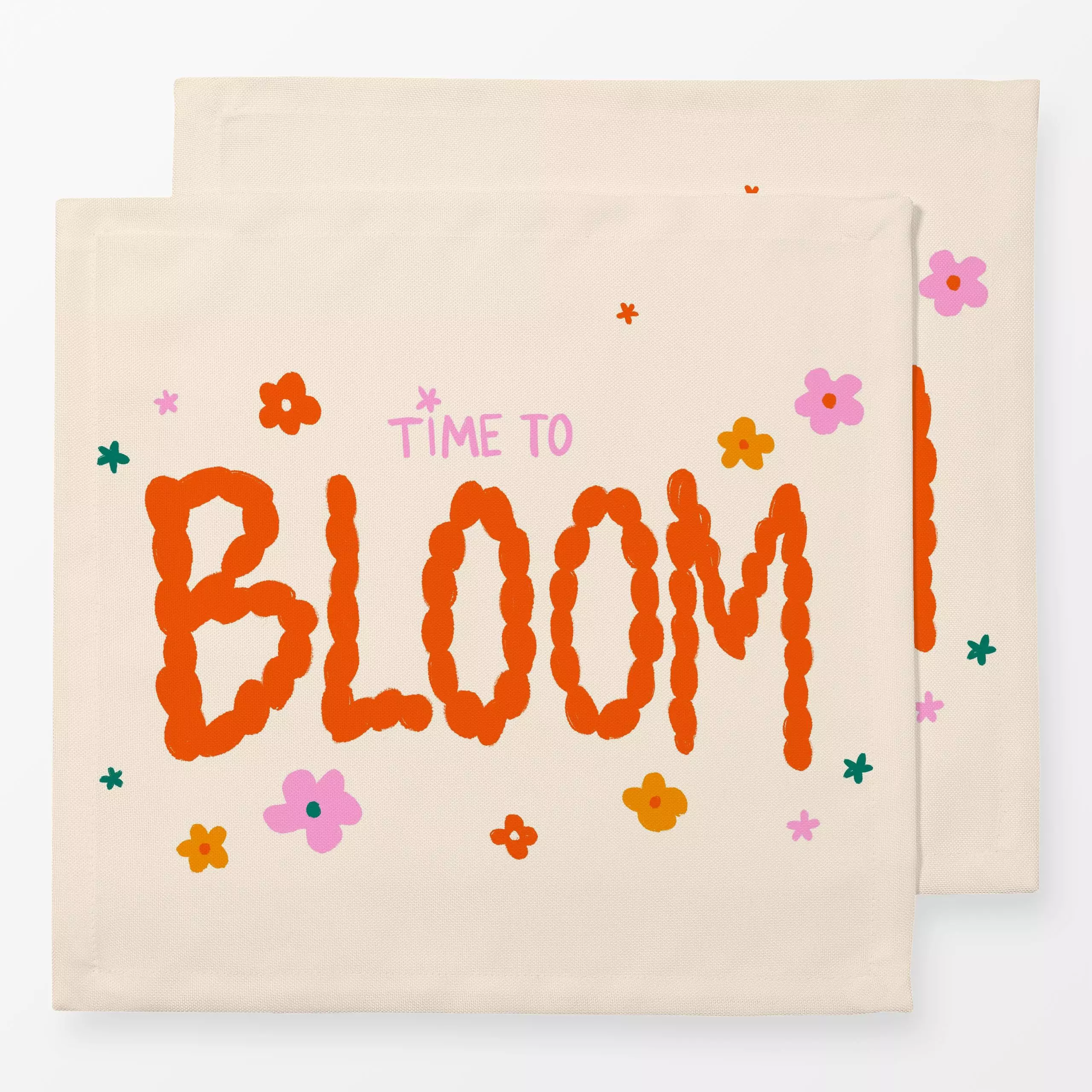 Servietten Time to Bloom Creme - Blumen & Florales, Frühling, Sprüche & Schriftzüge - von „Janna Schipper"; Blumen, Retro, n...