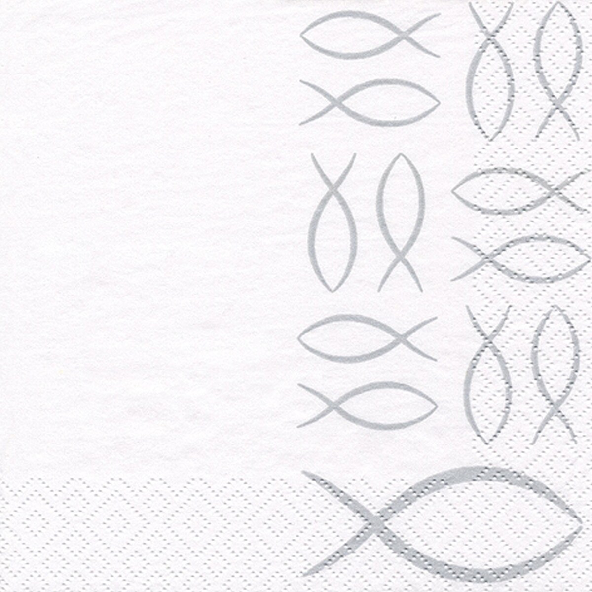 Tischdeko Kommunion Glaube silber Konfirmation Festtagstisch Fisch, Ausf:20 Servietten