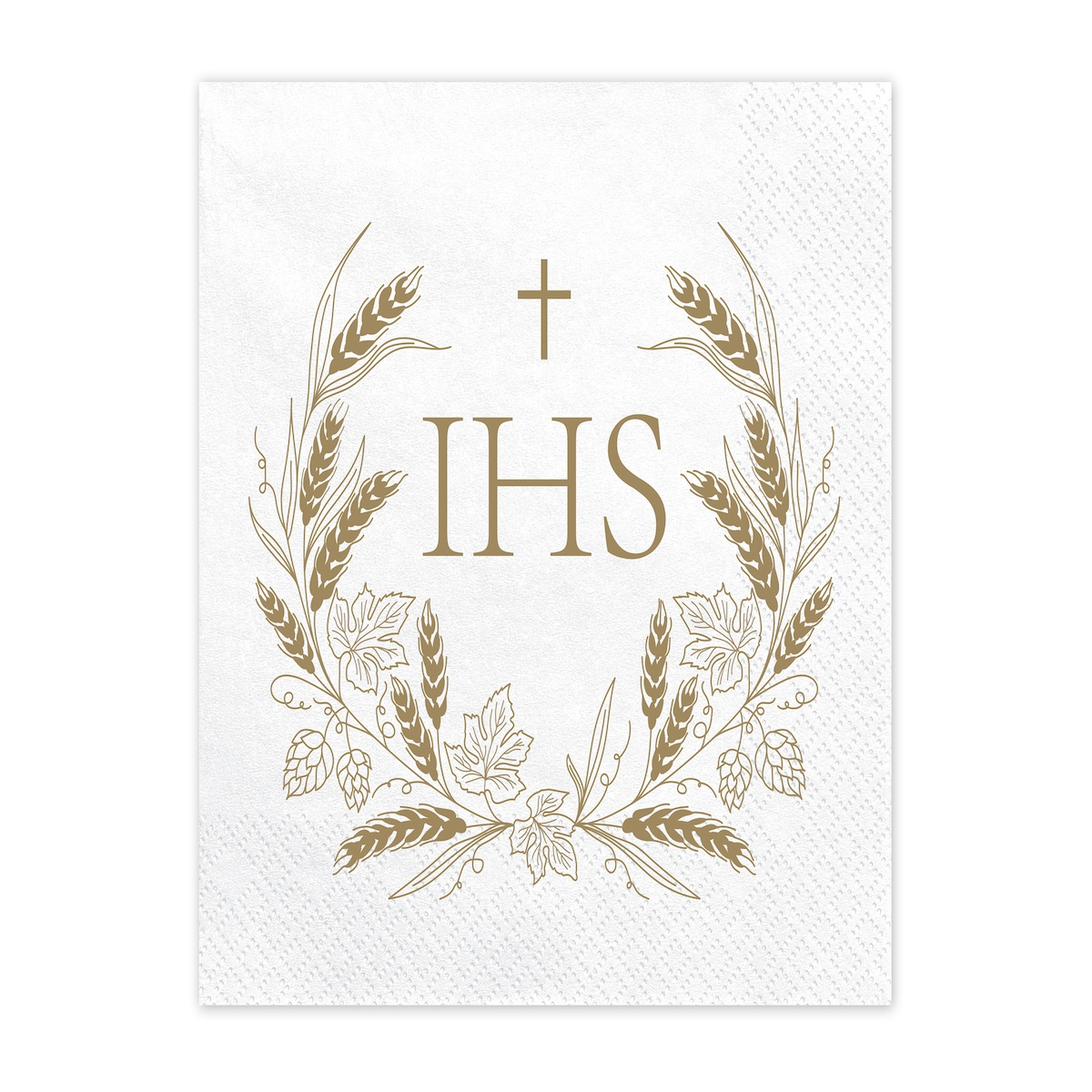 20 Kommunion Servietten in Weiß und Gold IHS 33x33cm