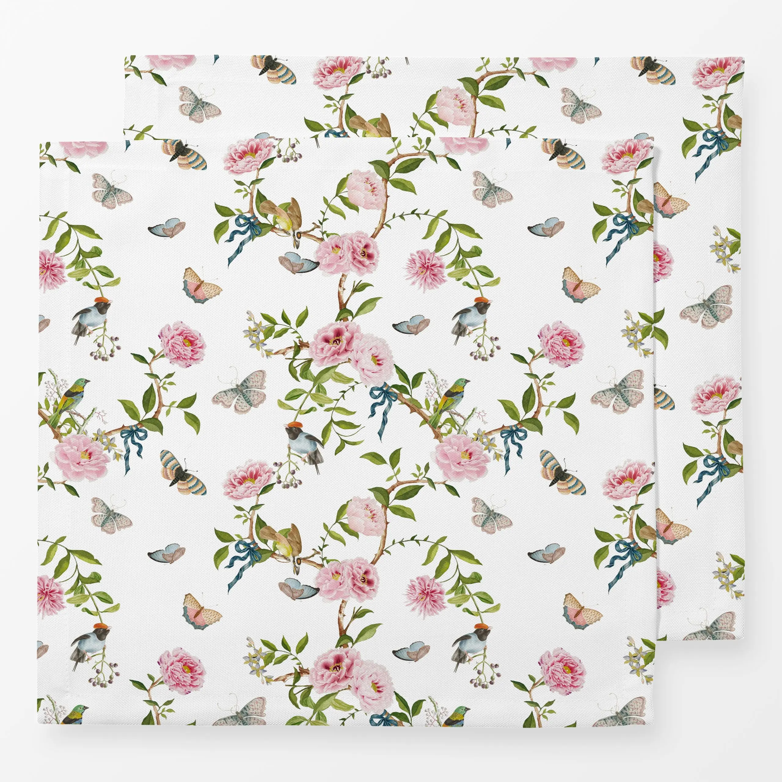 Servietten Vogel Chinoiserie Garten - Blumen & Florales, Tiere - von „Uta Naumann"; Muster, Rosen, Pfingstrosen, Vogel, Schm...