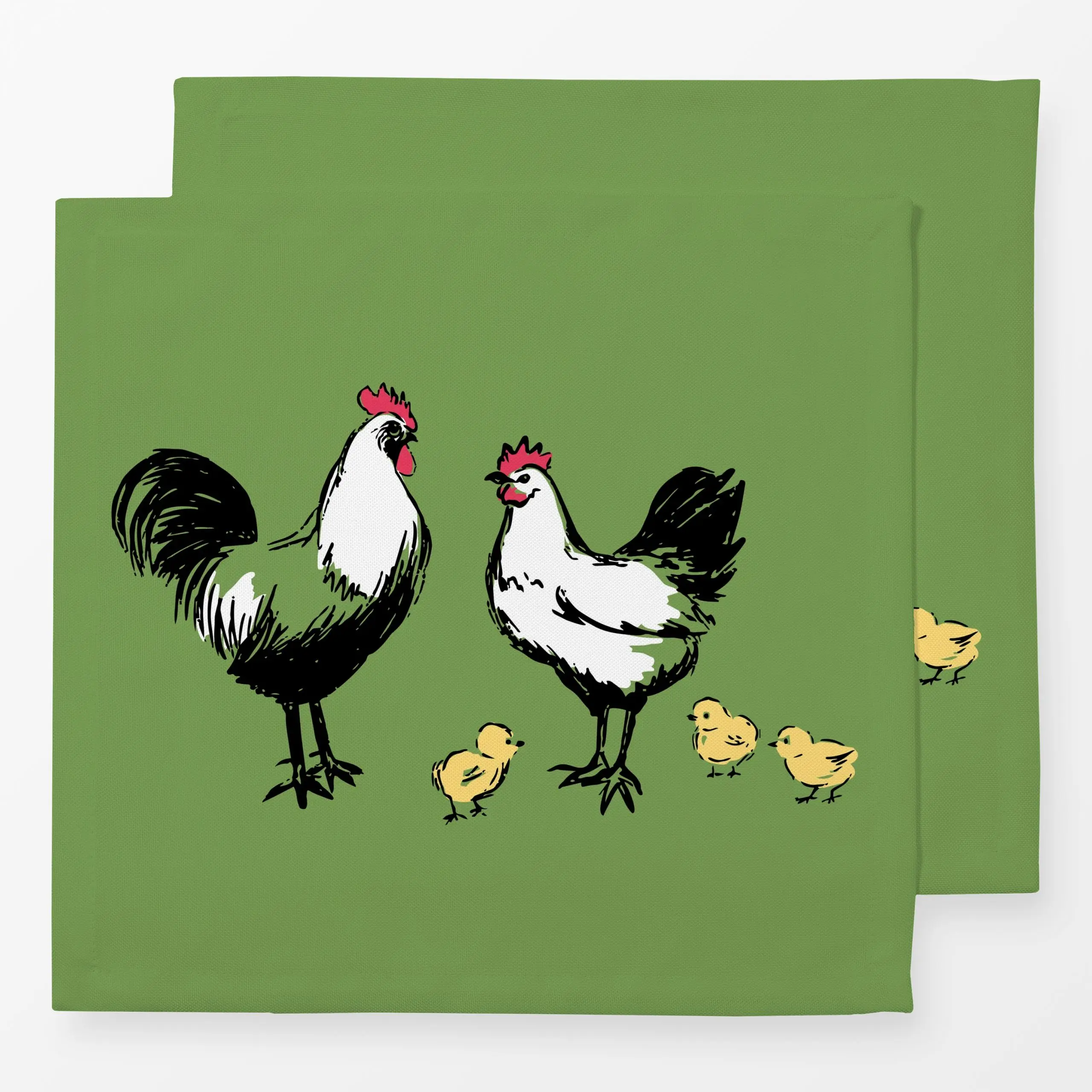 Servietten Huhn Hahn und Küken grün - Frühling, Tiere, Ostern - von „moDeern Design Studio"; Haus - & Bauernhoftiere, Hühner...