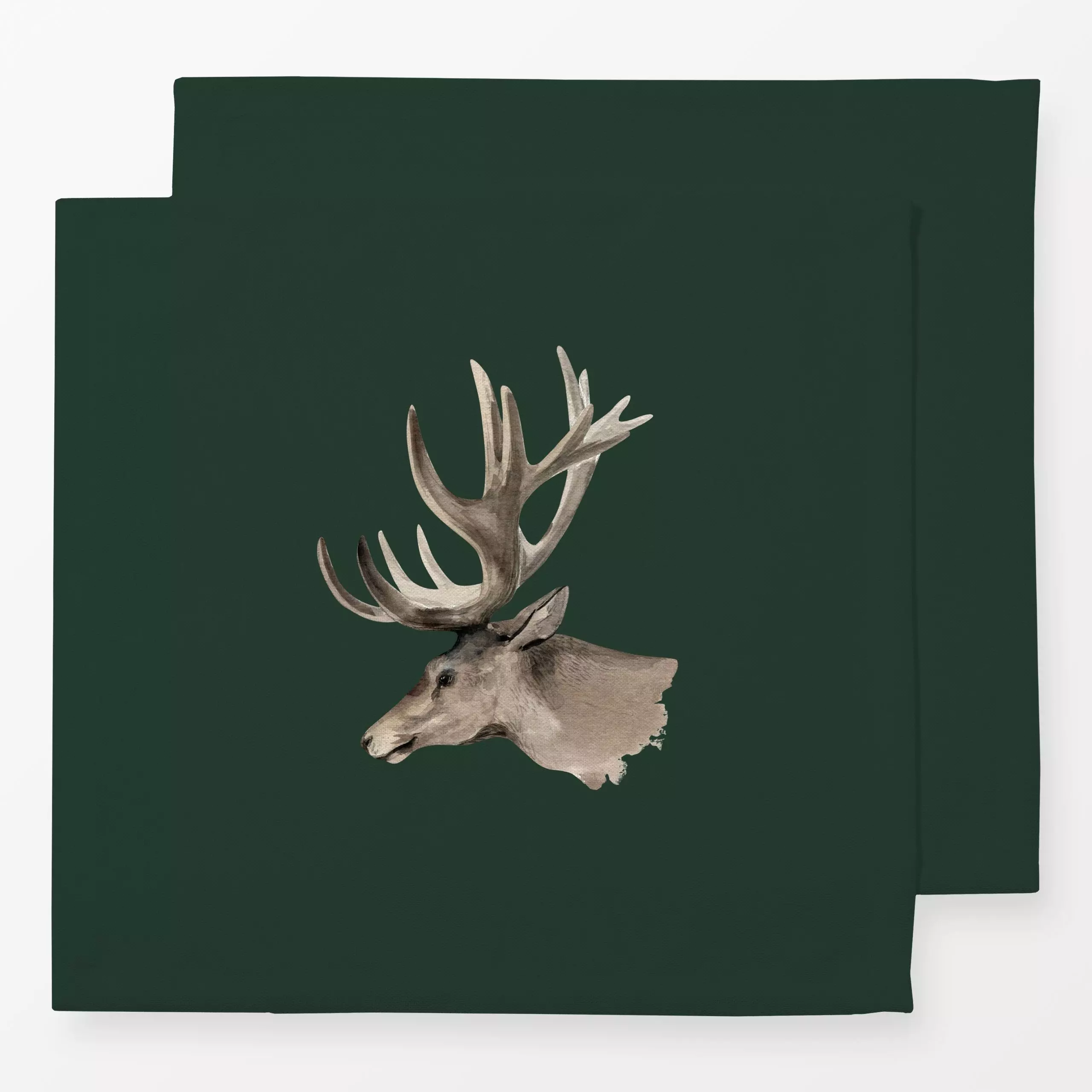Servietten Hirschkopf Profil tannengrün - Tiere - von „Katrin Graff"; Aquarell, Wald, Wildtiere, Herbst, Hirsch, Waldtiere, ...