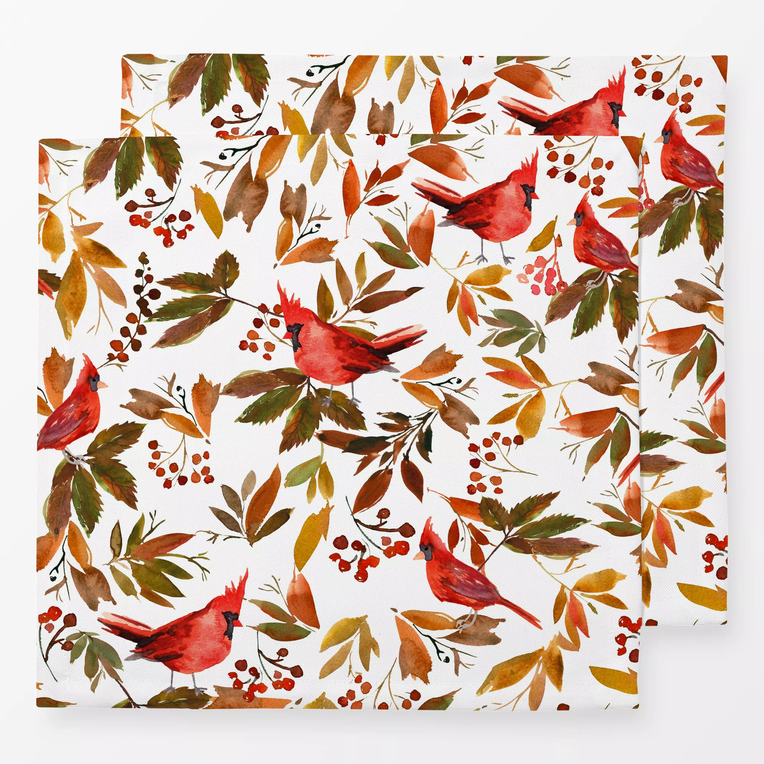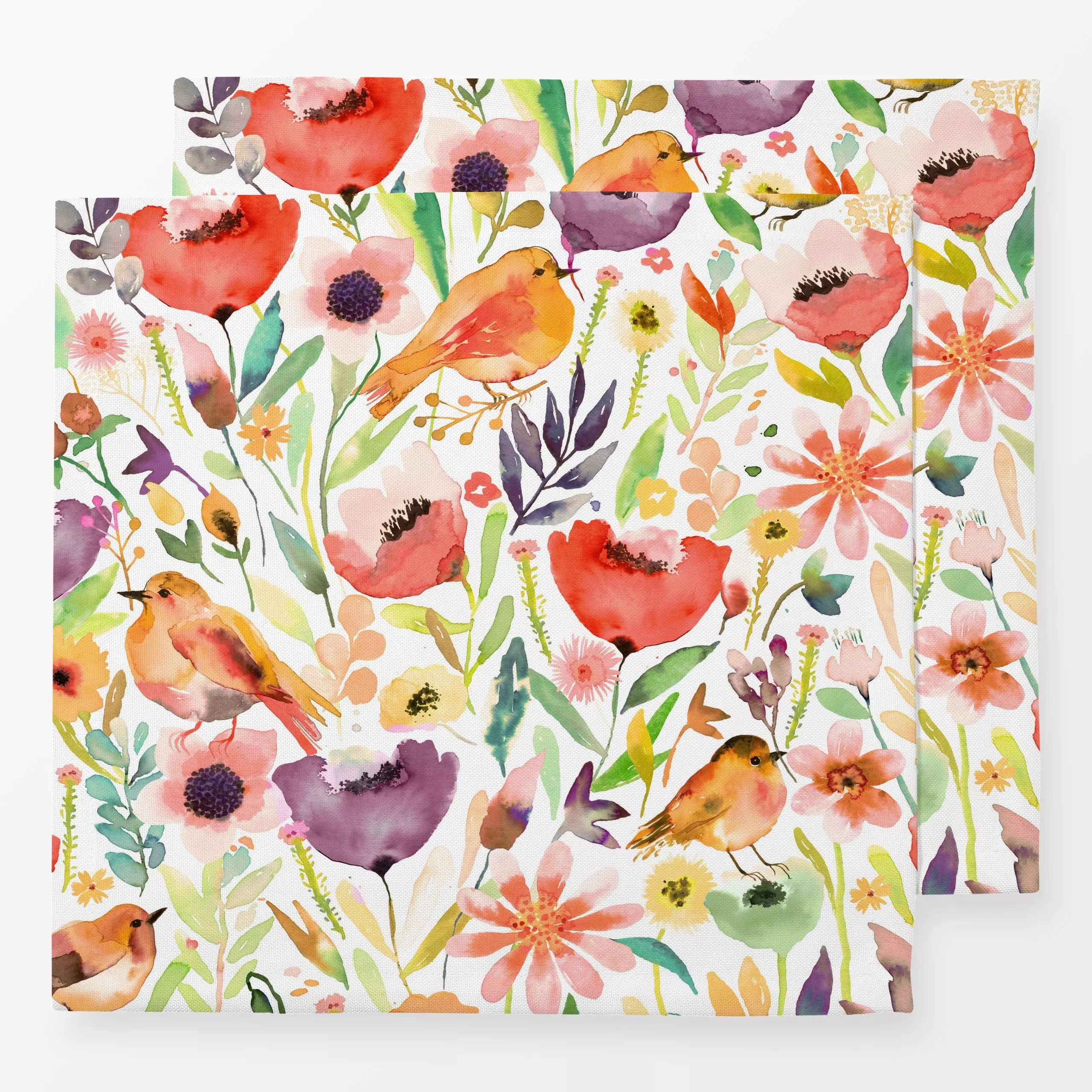 Servietten Whimsical Meadow Birds Fall - Blumen & Florales, Tiere - von „Ninola Design "; Aquarell, Natur, Blumen, Wald, Coz...