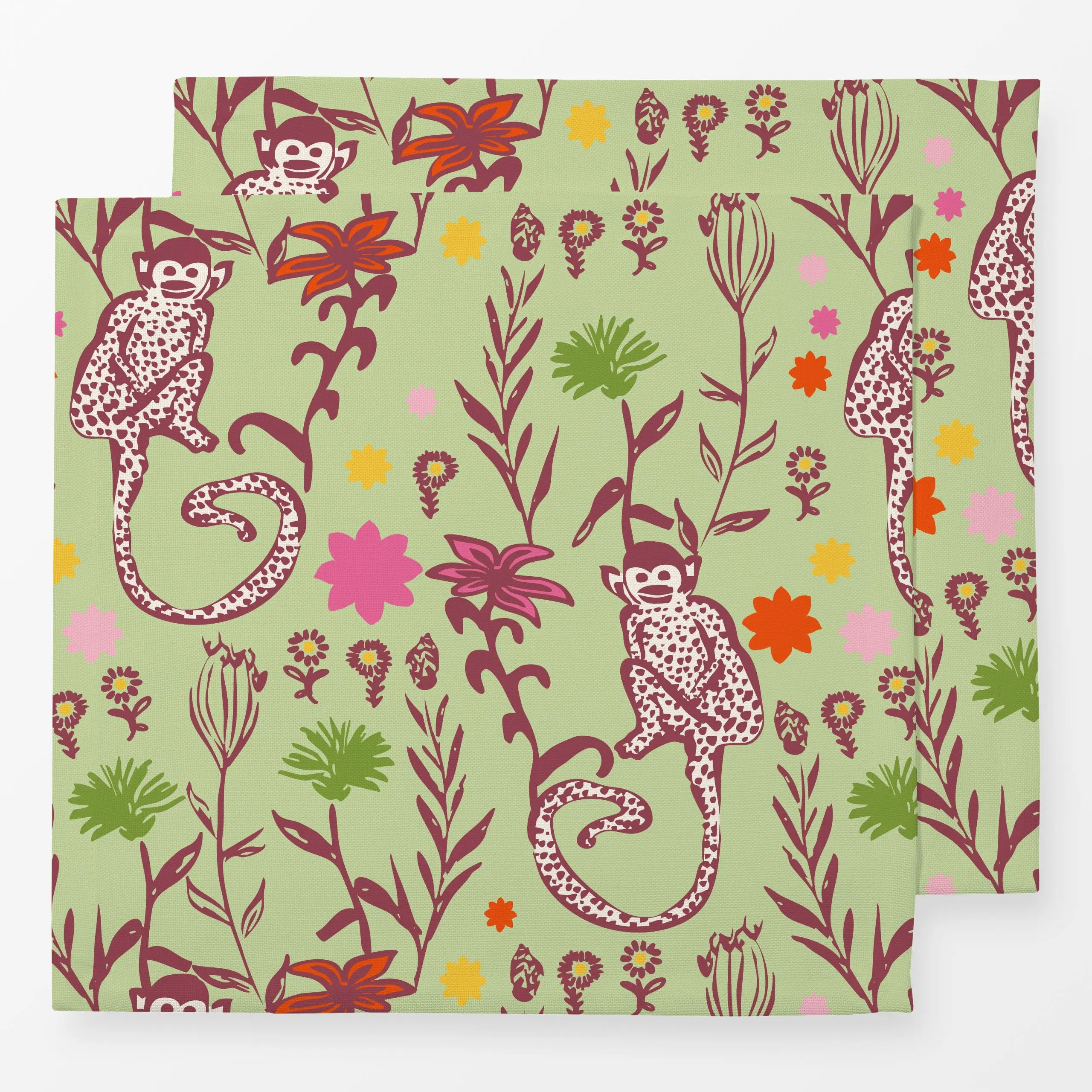 Servietten Monkey Green - Blumen & Florales, Sommer, Tiere - von „Patries Elisabeth"; Affe, Wildtiere, tropisch, tropical, J...