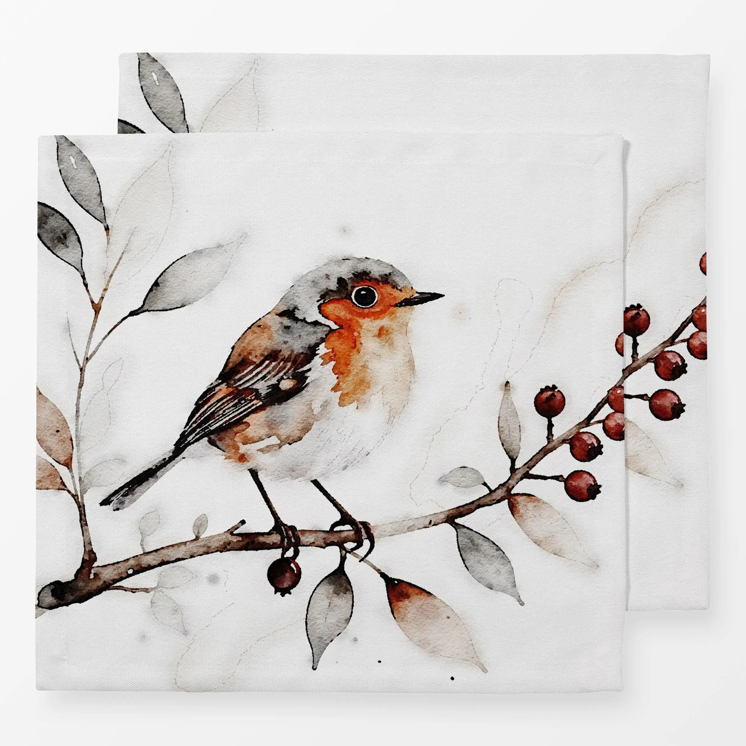 Servietten Rotkehlchen Aquarell - Tiere, Weihnachten, Winter - von „Monika Strigel"; Natur, Zweige, Wald, Vogel, Rotkehlchen...