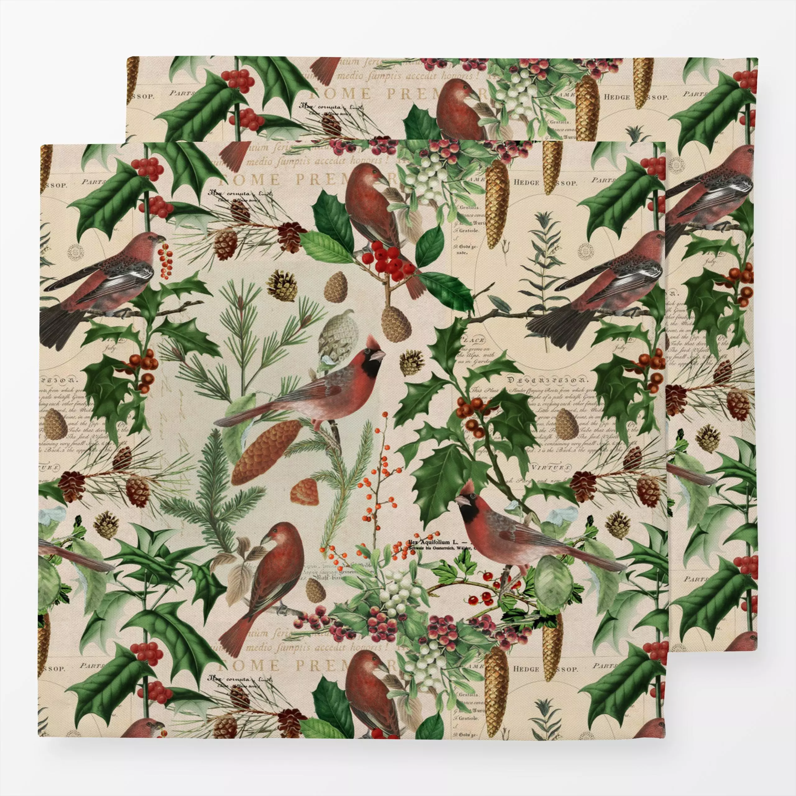 Servietten Nostalgische Wintervögel - Tiere, Winter, Pflanzen & Botanik - von „Andrea Haase"; Tanne, Beeren, Vogel, Tannenza...