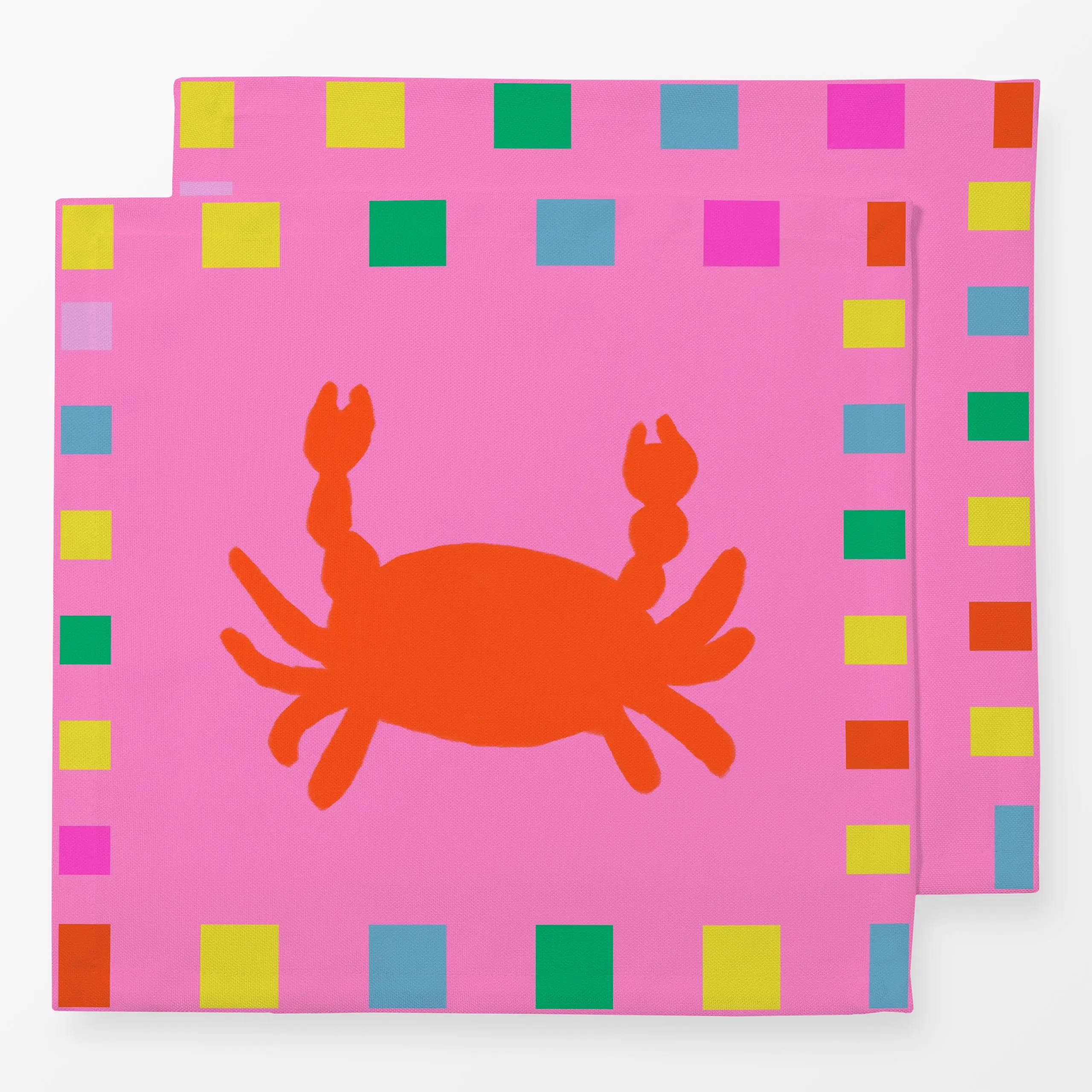Servietten Krebs Bunter Rahmen Pink - Sommer, Tiere - von „Alisa Knöß"; bunt, Gartendeko, outdoorkissen, Krebs, sommerfarben...