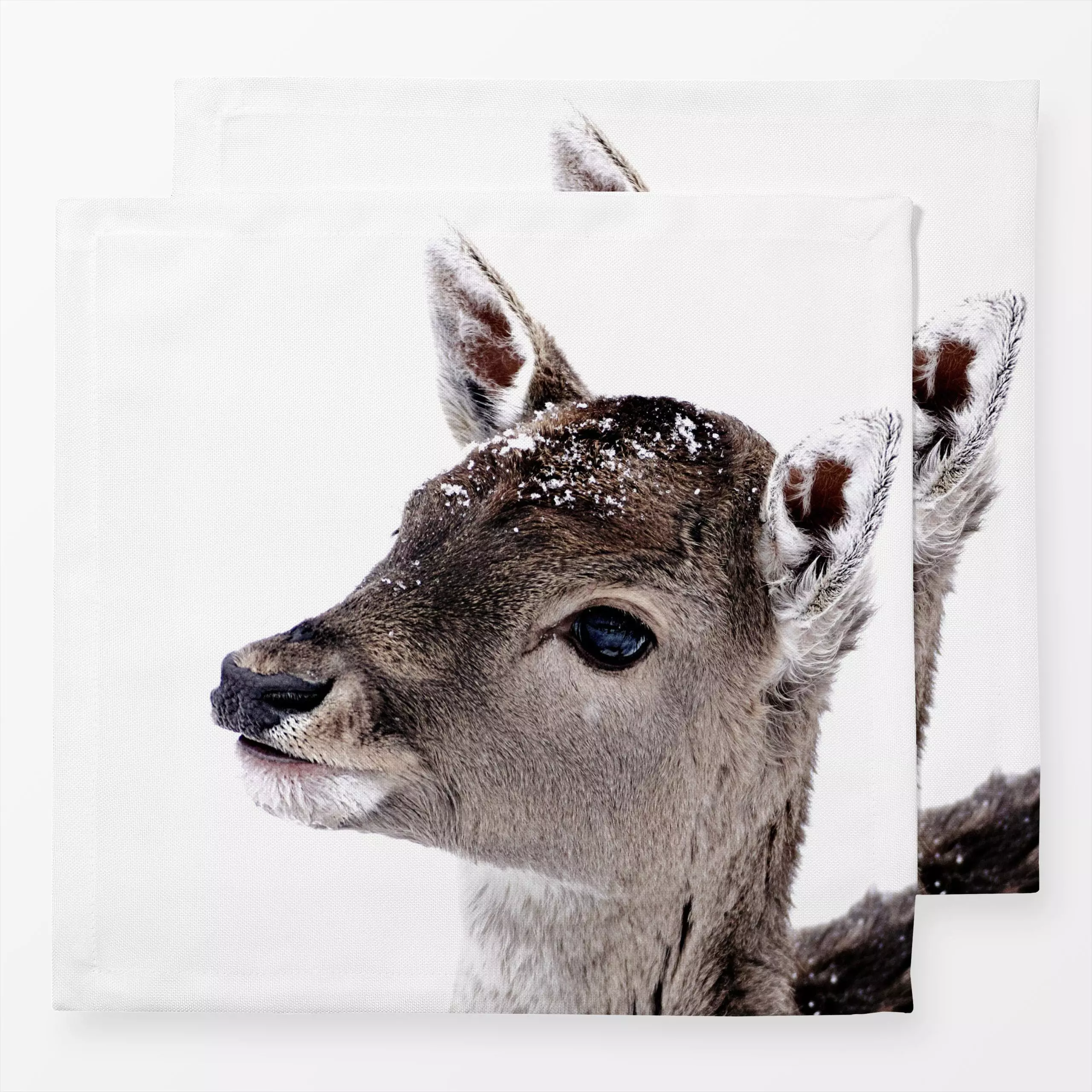 Servietten Rehkitz im Winter 2 - Tiere, Weihnachten - von „Monika Strigel"; Weihnachten, Winter, Hirsch, Scandi, Rehe, Nordi...