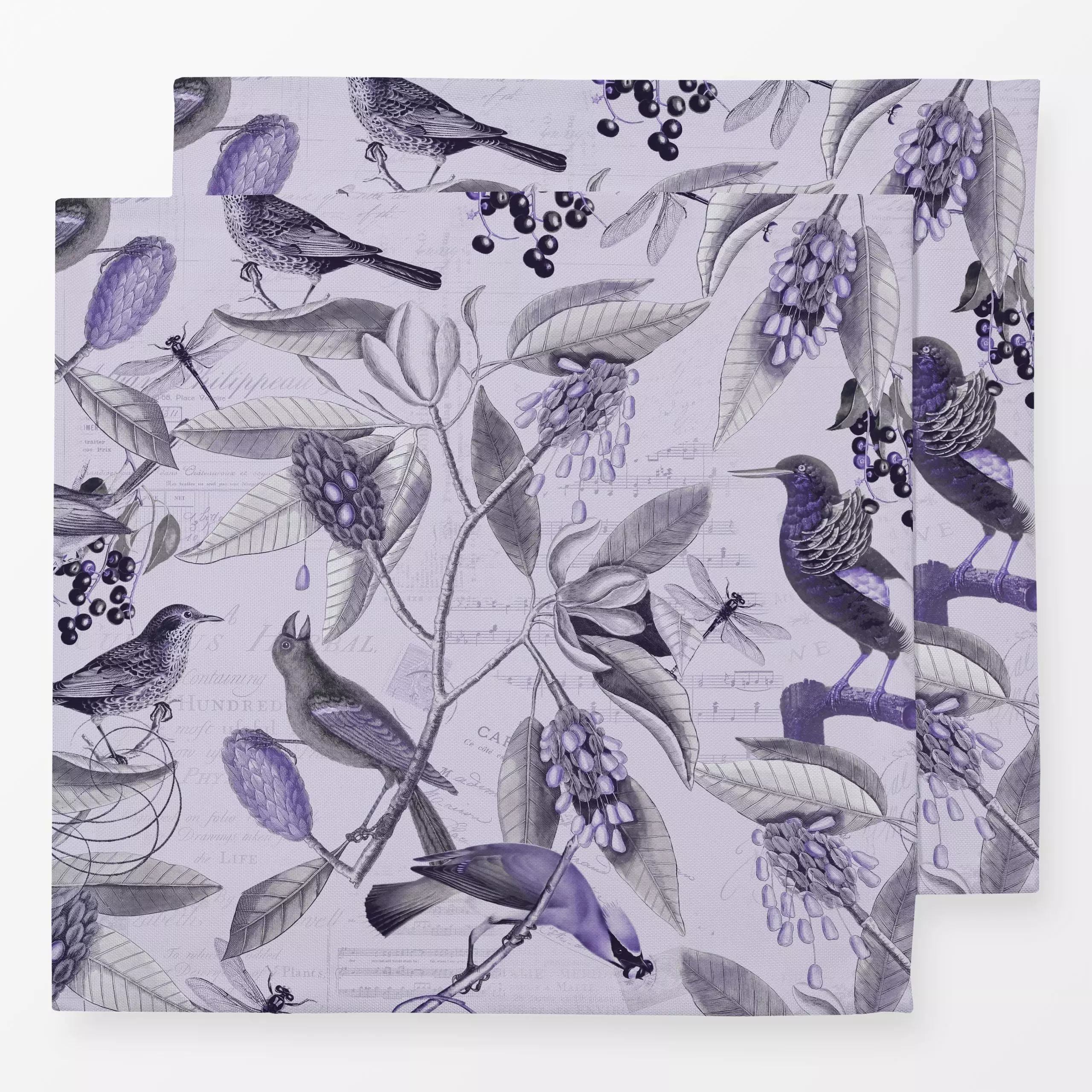 Servietten Nostalgic Magnolia Bird Purple - Blumen & Florales, Tiere - von „Andrea Haase"; Natur, vintage, typografie, botan...