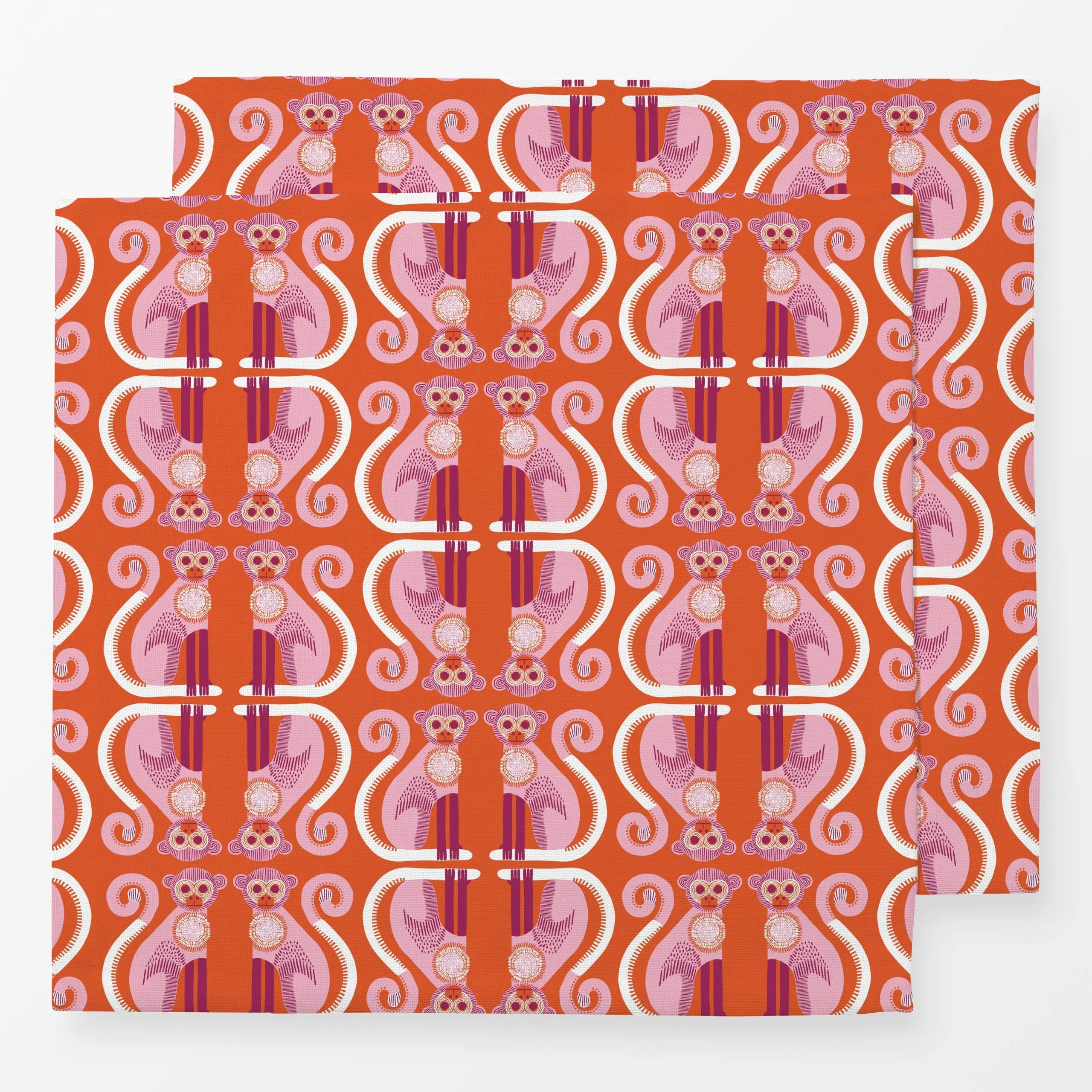 Servietten Affen Allover orange - Sommer, Tiere, Safari & Dschungel - von „moDeern Design Studio"; boho, tropisch, tropical,...