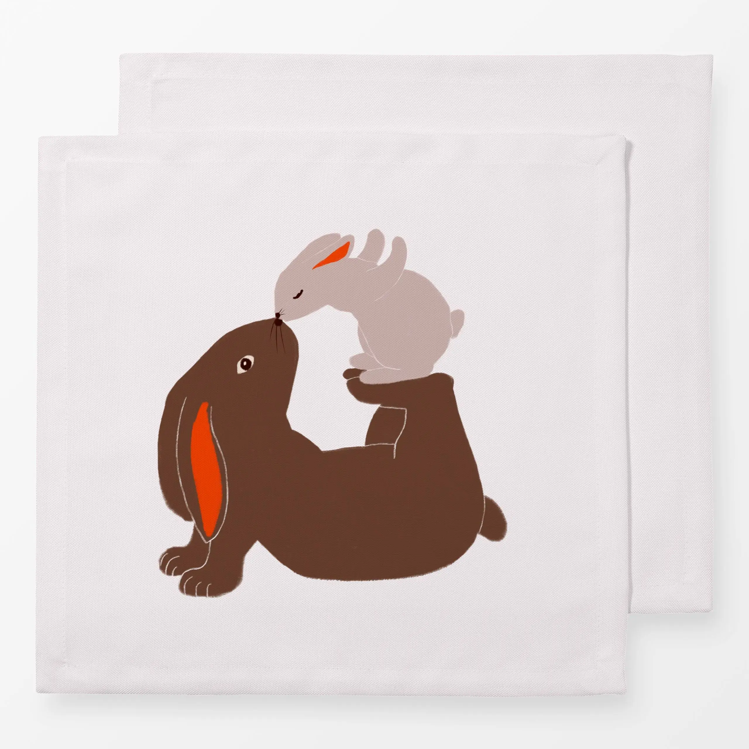 Servietten Hase mit Kind Kuss - Tiere, Ostern - von „Sophie Augustin Illustration"; Hase, Kaninchen, Ostern, Osterhase, Lieb...