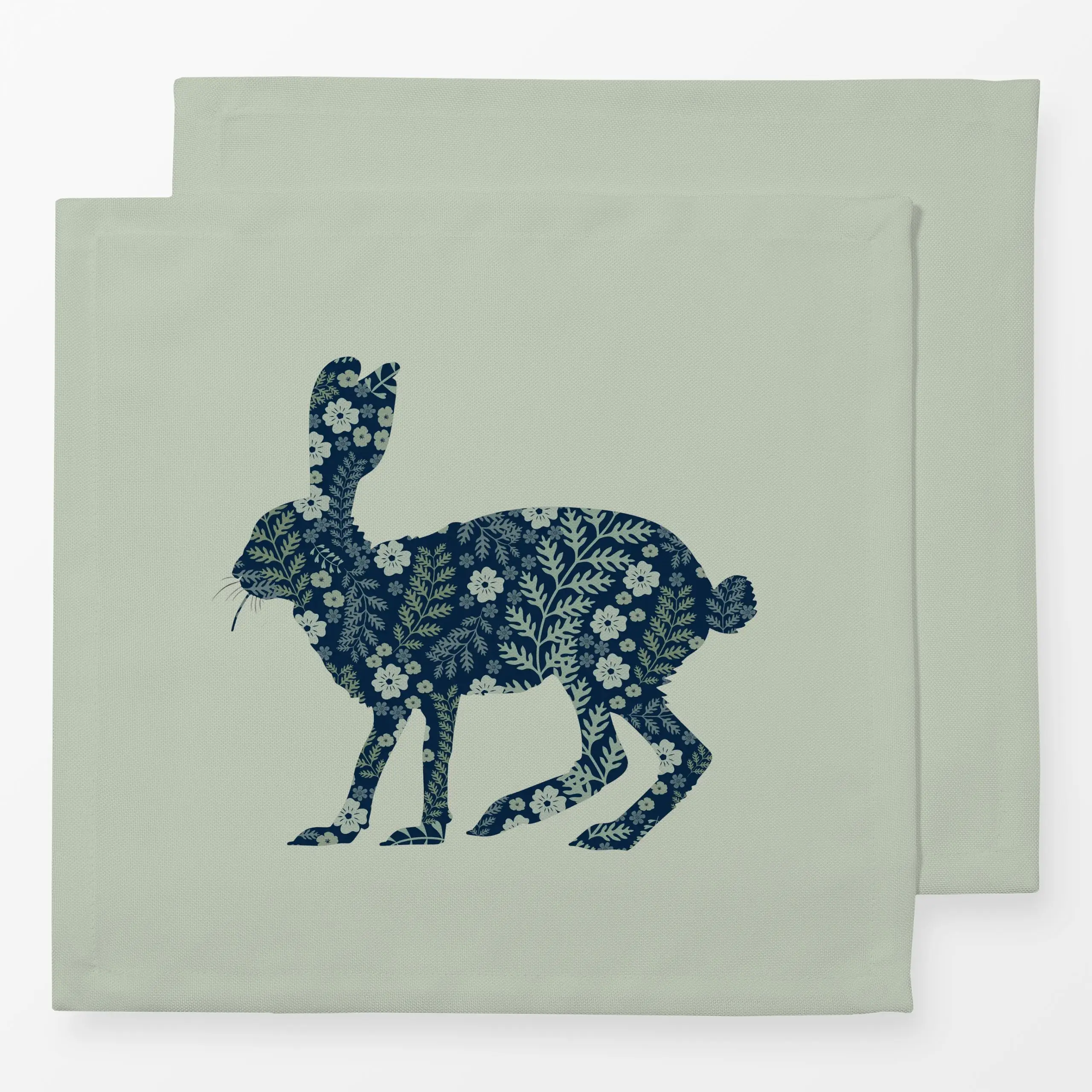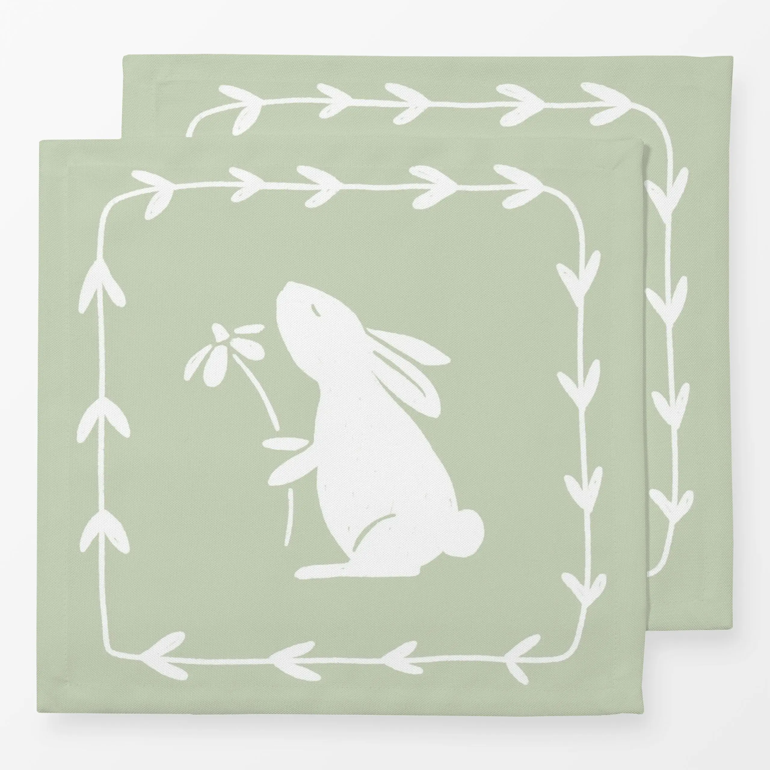 Servietten Hase mit Blume hellgrün - Frühling, Tiere, Ostern - von „Kruth Design"; Garten, niedlich, Ostern, Osterhase, land...