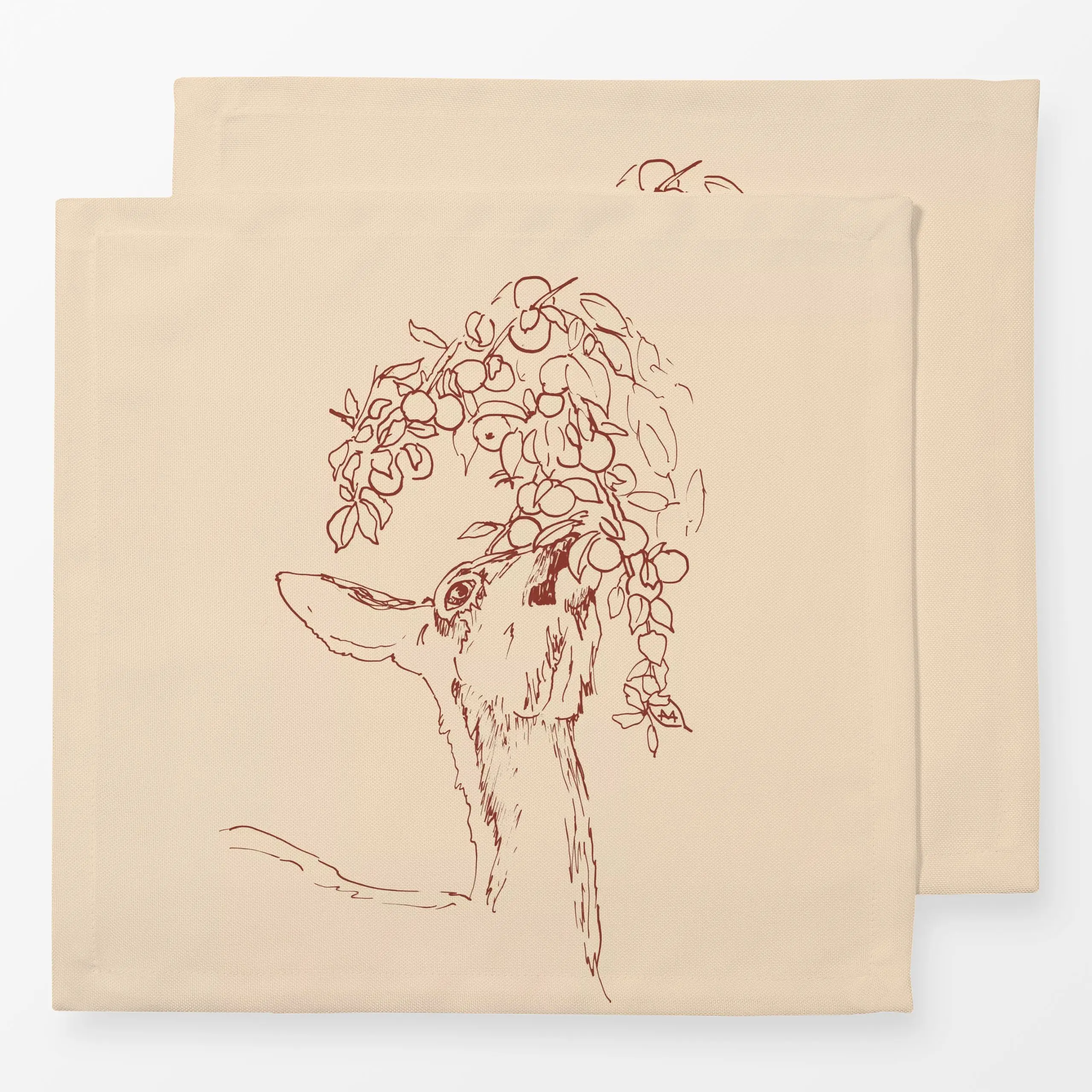 Servietten Hirschkopf Silhouette beige - Herbst, Tiere - von „Katrin Graff"; minimal, Wald, Herbst, Hirsch, landhaus, Waldti...