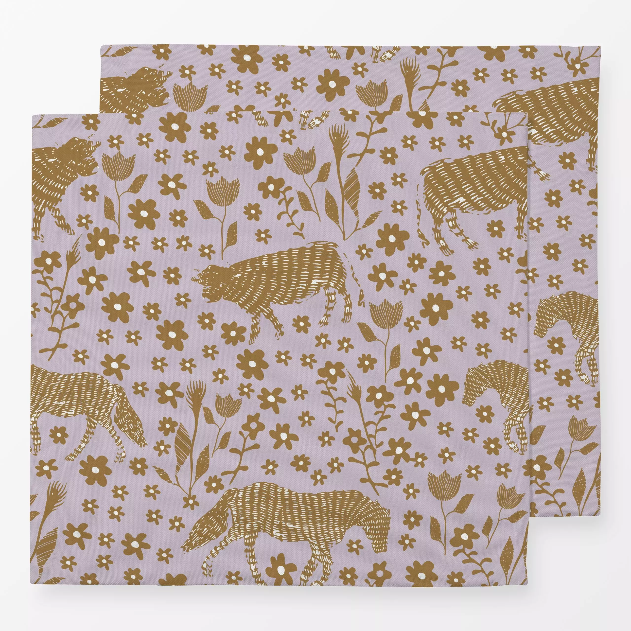 Servietten Weide lila - Herbst, Tiere - von „Patries Elisabeth"; Muster, Kuh, Pferde, Tiere, landhaus, Blumenwiese, Khaki, B...