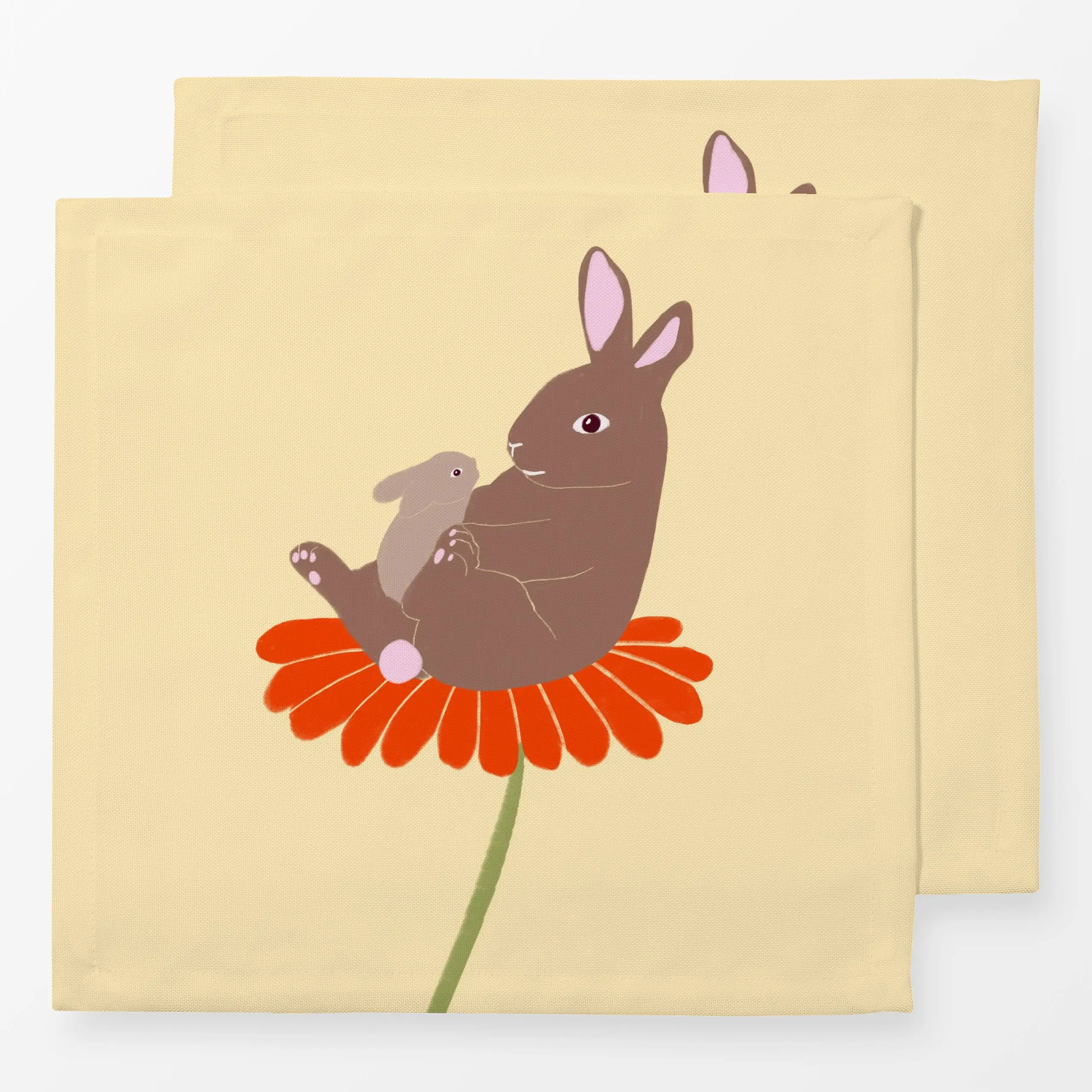 Servietten Hase mit Baby Blume - Frühling, Tiere, Ostern - von „Sophie Augustin Illustration"; Blumen, Ostern, Osterhase, Fr...