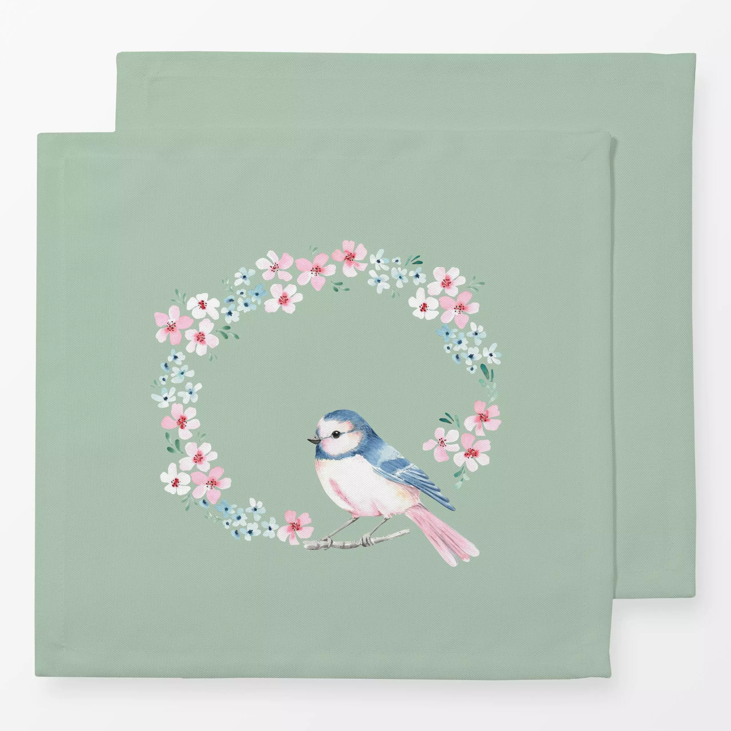 Servietten Blumenkranz Vogel grün - Blumen & Florales, Frühling, Tiere, Ostern - von „Katrin Graff"; Vogel, Eisvogel, Vergis...